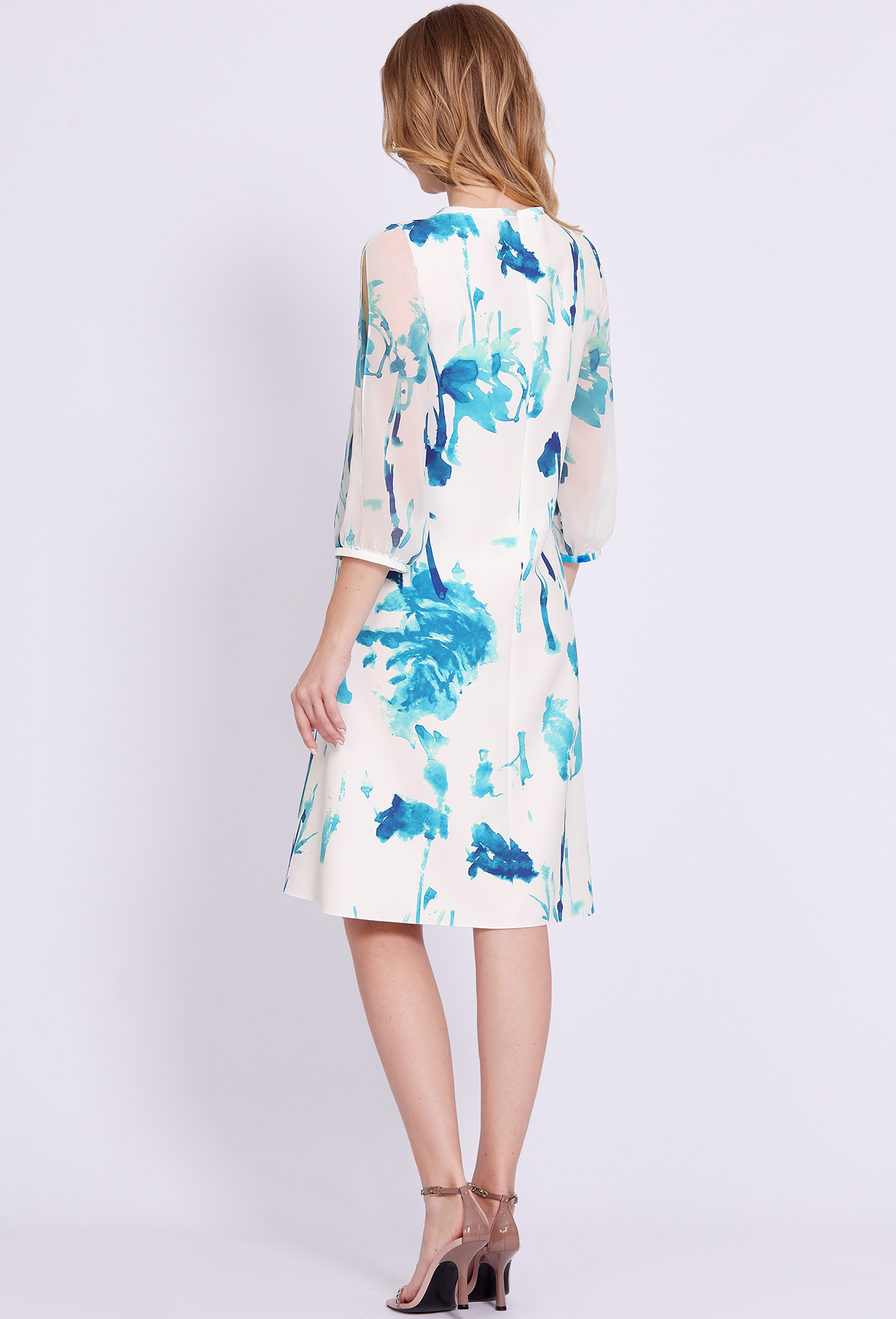 Это элегантное платье поможет вам почувствовать себя особенной! Это лучший наряд, который будет удобным в носке и в то же время подчеркнёт Вашу женственность. Модель А-образного силуэта с округлой формой горловины, в среднем шве спинки обработана застёжка на потайную молнию. Рукава втачные, полупрозрачные, укороченные, со щелевидными разрезами, сосборенные по низу тонкими манжетами. Платье сшили из приятной ткани с красивым абстрактным цветочным принтом и шифона в том же тоне.