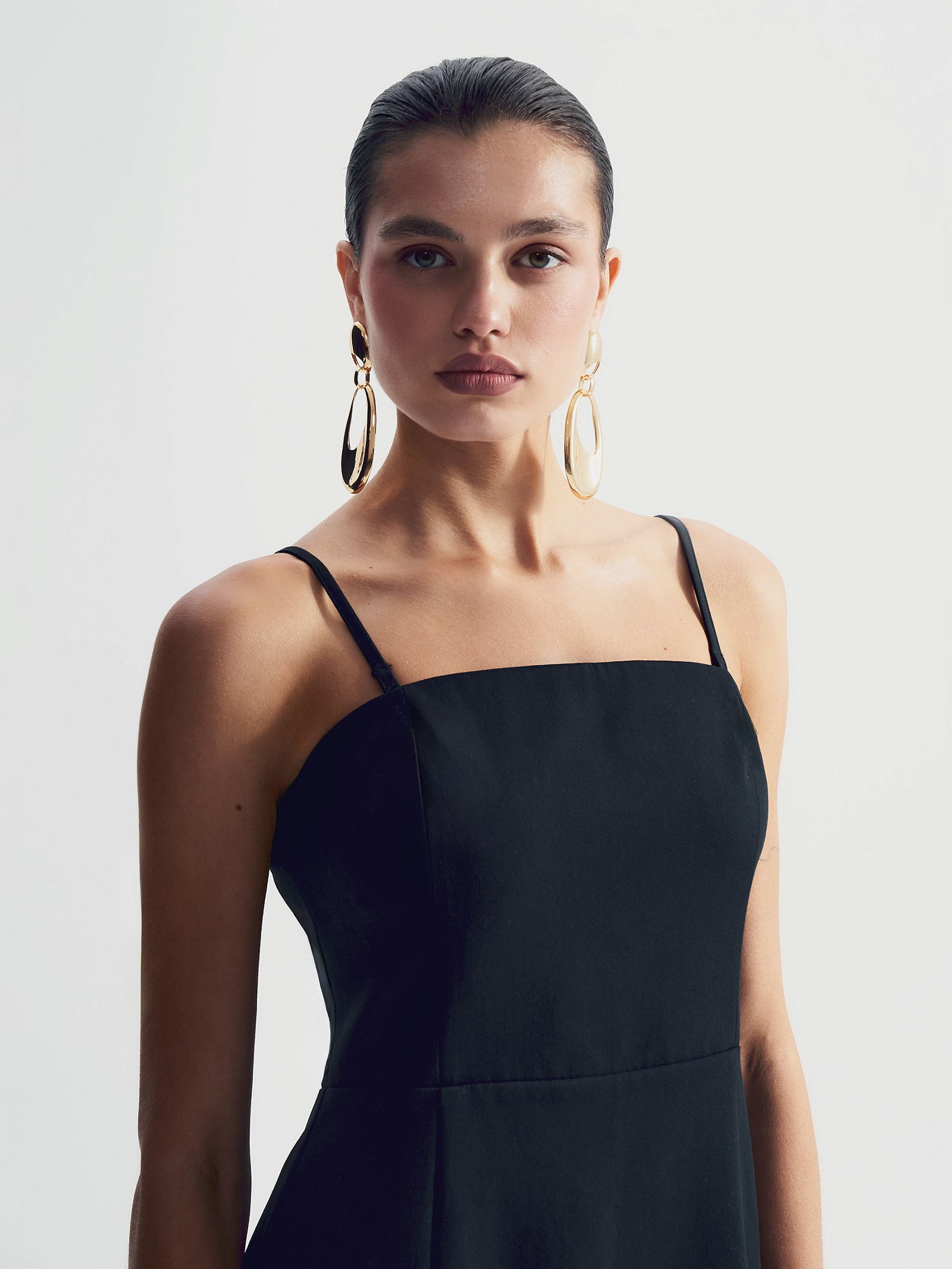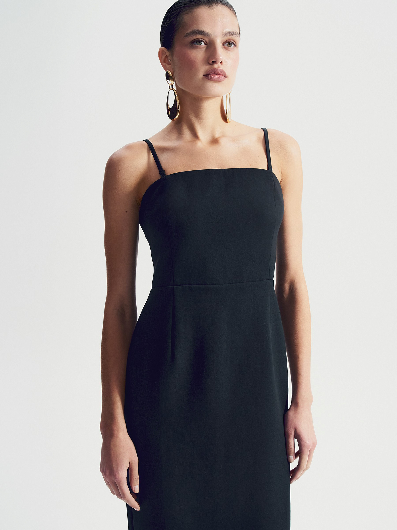 Лаконичное платье на тонких бретелях станет основой множества образов. Идеальный вариант под жакеты или на прозрачные лонгсливы из сетки.