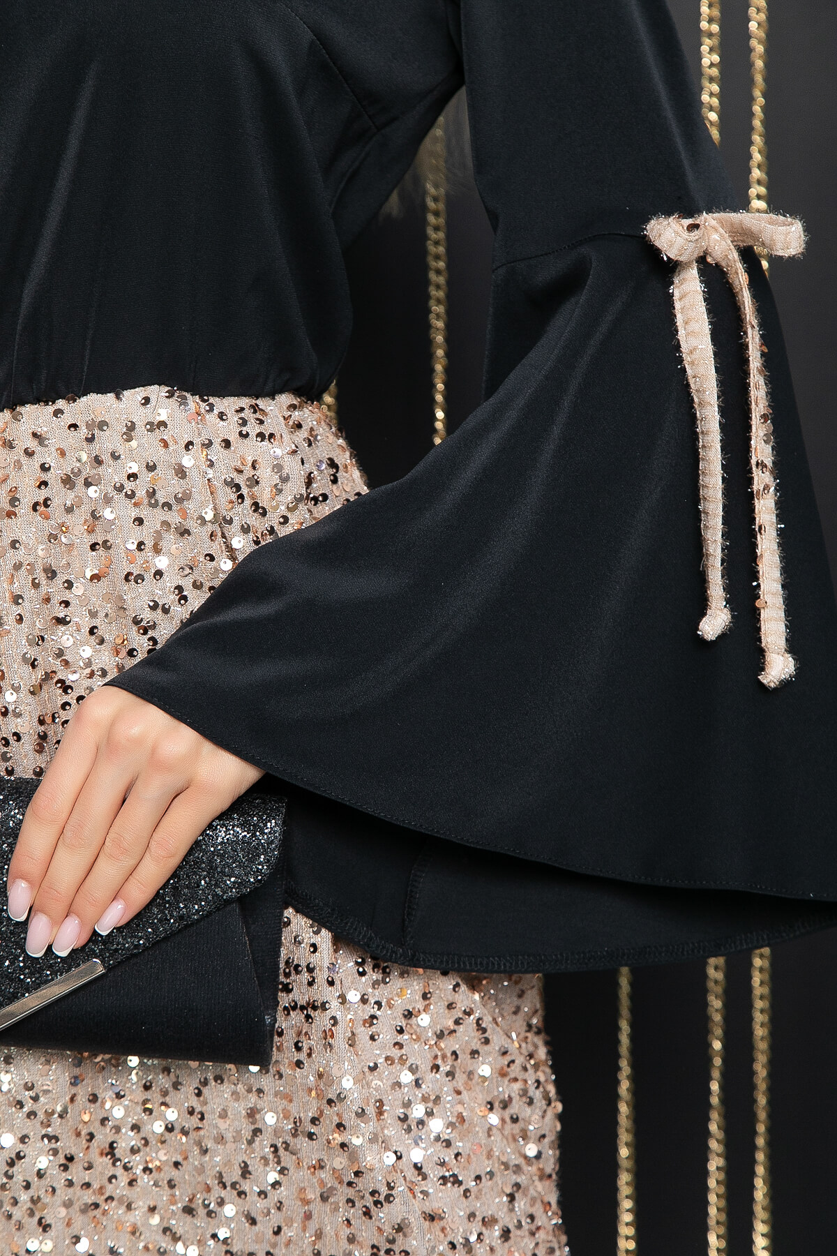 Материал: верх - плательная, юбка - трикотаж с пайетками.