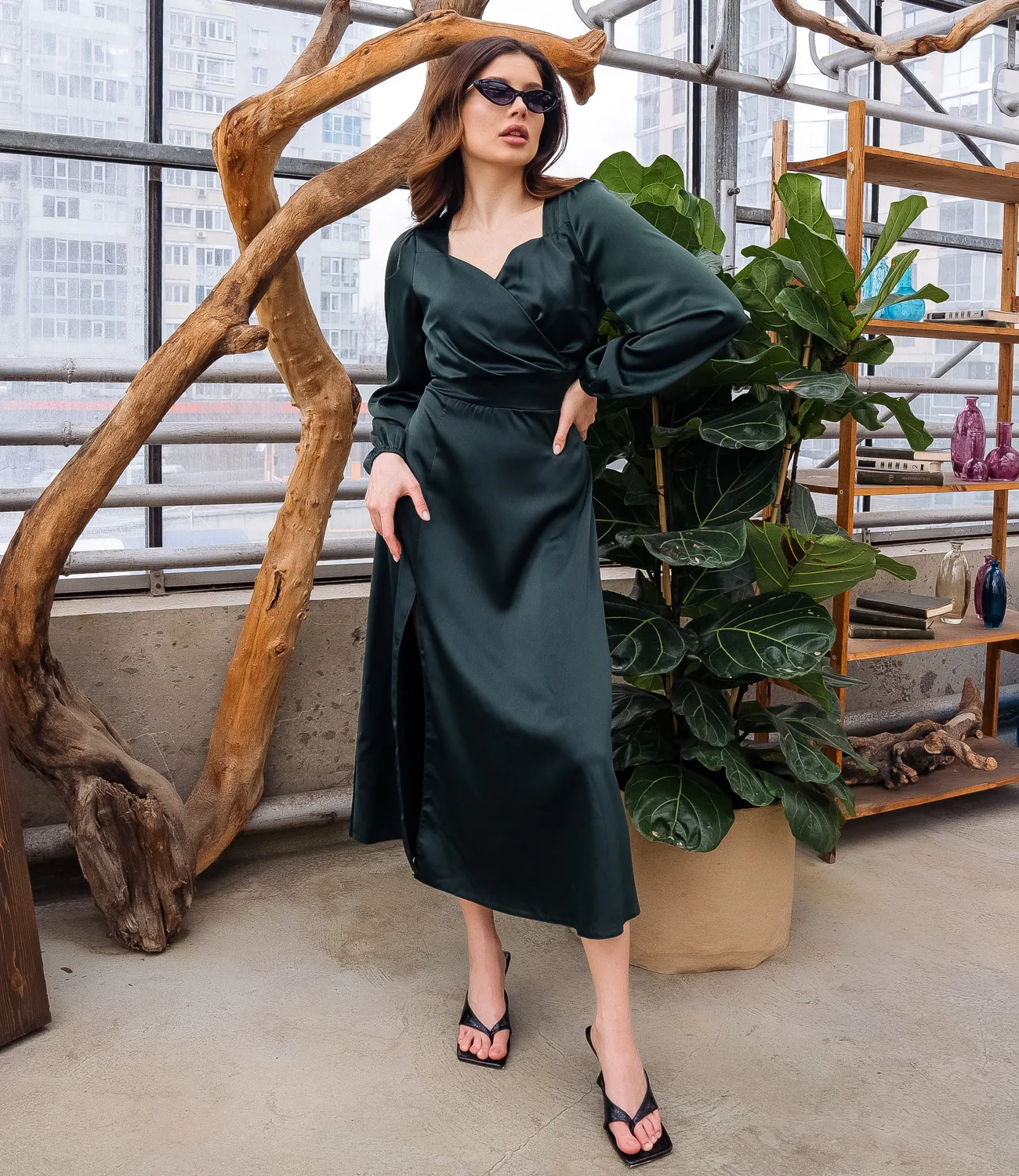 Комфортное и удобное платье модной длины миди придает образу одновременно скромности и женственности. Данная модель из атласа отлично сочетается с обувью на высоком и низком каблуке. Полиэстер