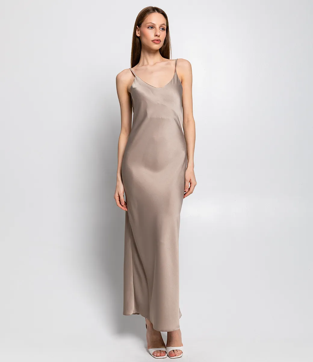 Длинное платье комбинация это всегда идеальный выбор для вечерних мероприятий или повседневного образа. Легкая ткань выгодно подчеркивает фигуру.