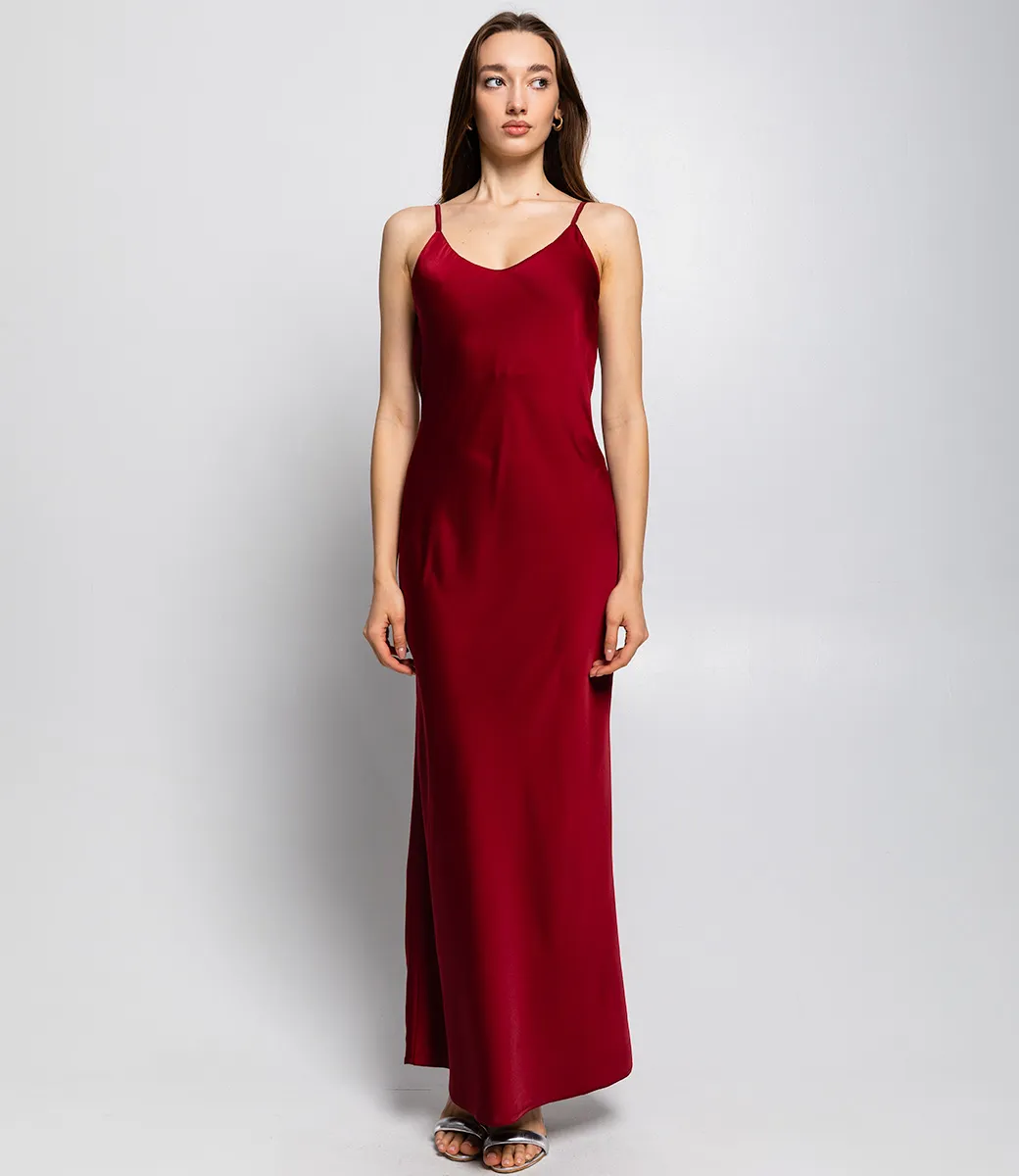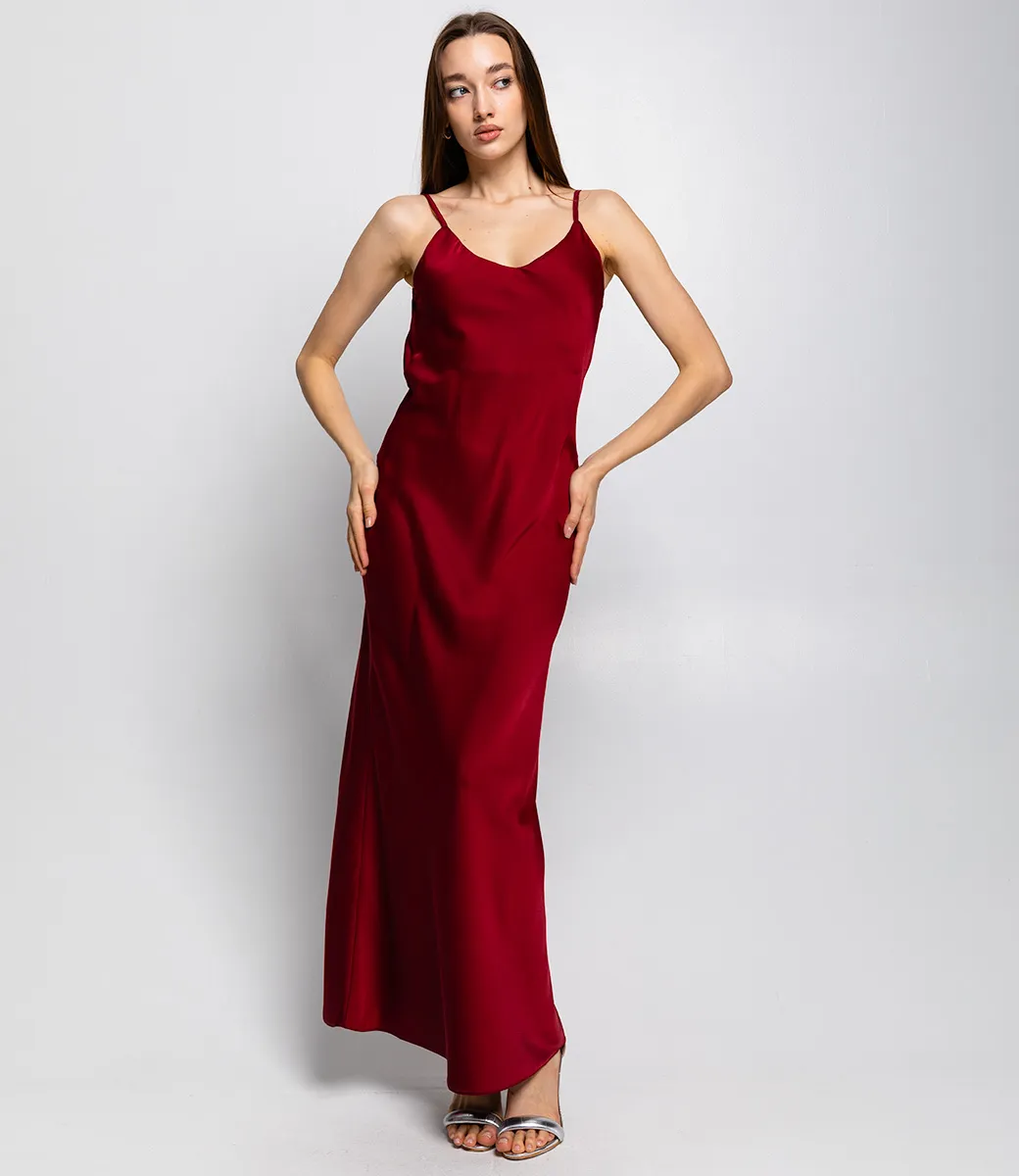 Длинное платье комбинация это всегда идеальный выбор для вечерних мероприятий или повседневного образа. Легкая ткань выгодно подчеркивает фигуру.