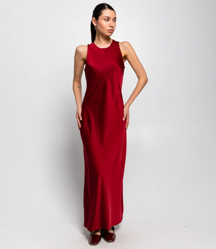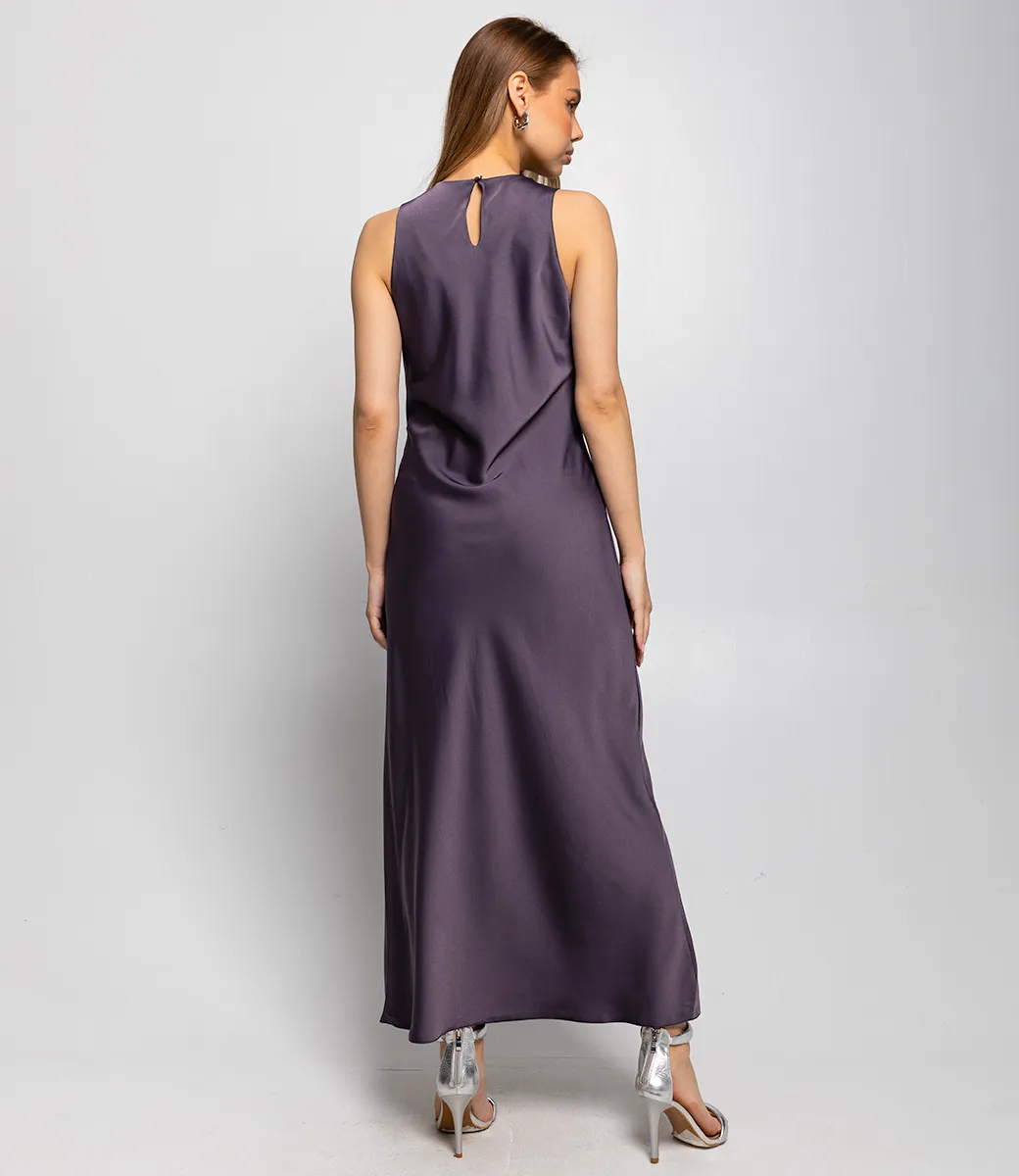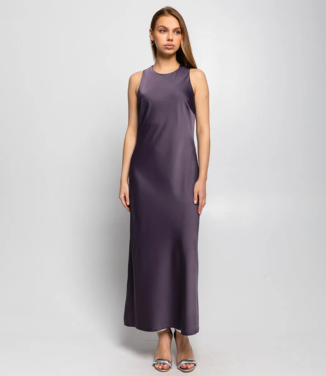 Легкое платье выполнена из атласной ткани, которая будет прилегать к телу и подчеркивать все достоинства фигуры. Рост модели 168, 89-63-90.