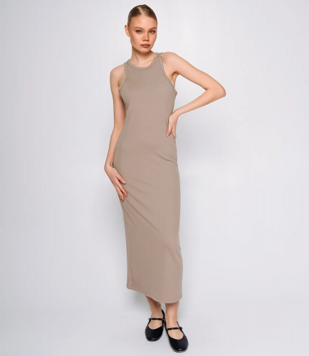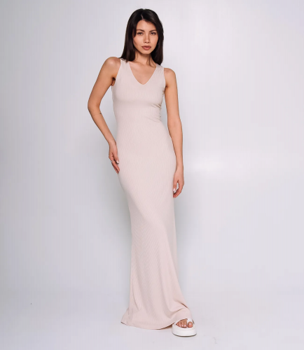 Это платье выполнено из 100% полиэстера и имеет облегающий силуэт, который прекрасно подчеркивает фигуру. Длинный вариант модели создает изящный и утончённый вид. Верхняя часть платья с v-образным вырезом акцентирует внимание на линии шеи и декольте, придавая образу особую элегантность. Отсутствие рукавов добавляет свежести и делает наряд ещё более женственным. Ткань с вертикальным рельефом создает эффект длины и визуально стройнит фигуру, что делает это платье прекрасным выбором для любой женской фигуры. Благодаря своей универсальности, его можно носить как на повседневные мероприятия, так и на более торжественные случаи, легко сочетая с различными аксессуарами и обувью. В этом платье ваши покупательницы смогут чувствовать себя уверенно и привлекательно в любой ситуации. Оно прекрасно подойдет для офисных встреч, романтических ужинов или вечерних мероприятий. Обратите внимание на разнообразие доступных цветов — каждый сможет выбрать что-то по своему вкусу. Для удобства выбора размера мы предоставили таблицу измерений, благодаря которой клиентки смогут легко определить подходящий вариант. Предложенная нами цена является доступной для оптовых покупателей. Это платье станет прекрасным дополнением вашего ассортимента, даря вашим клиентам возможность выглядеть шикарно в любое время! Подарите им возможность чувствовать себя особенными и стильными! Рост модели: 164, параметры: 83-61-89.