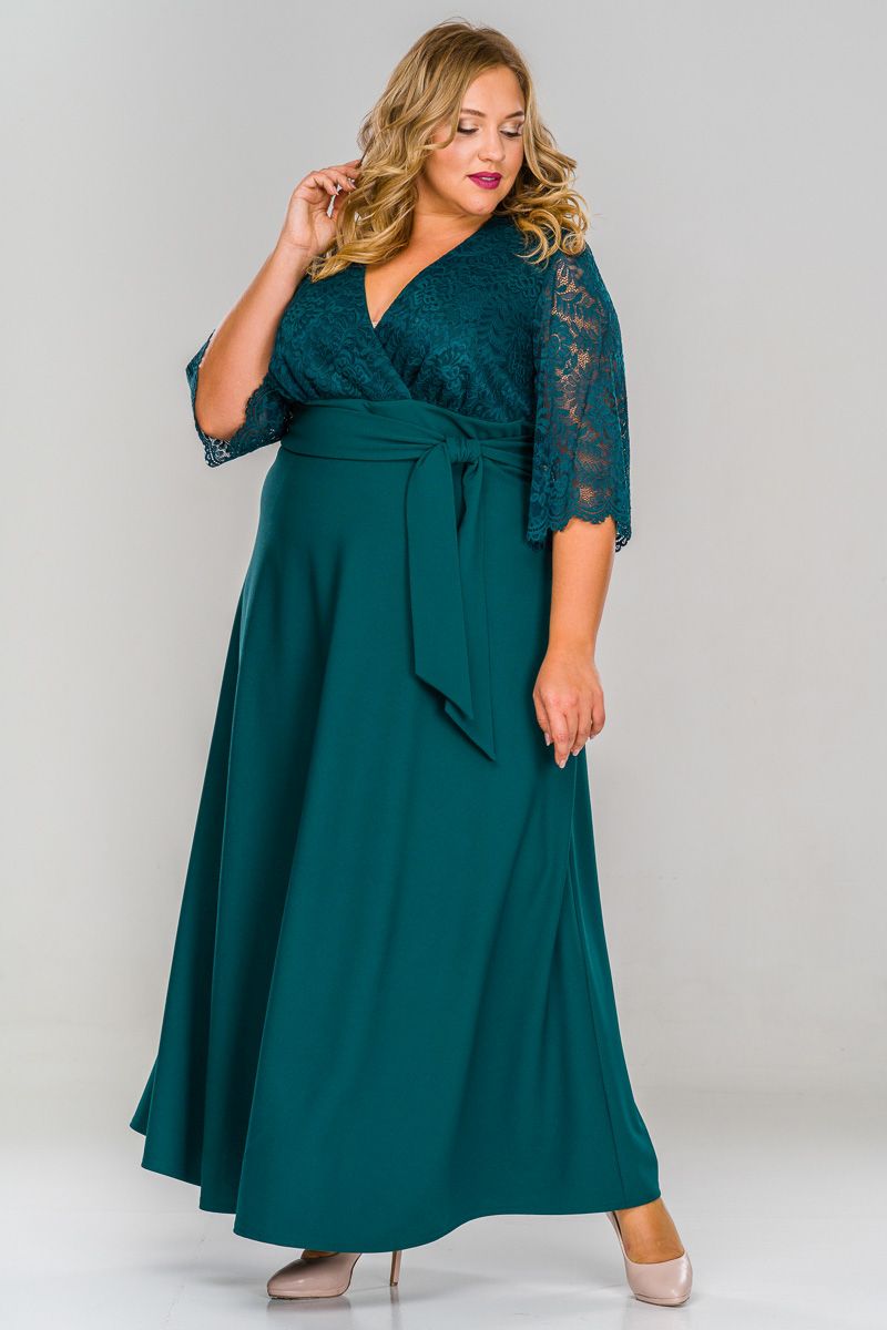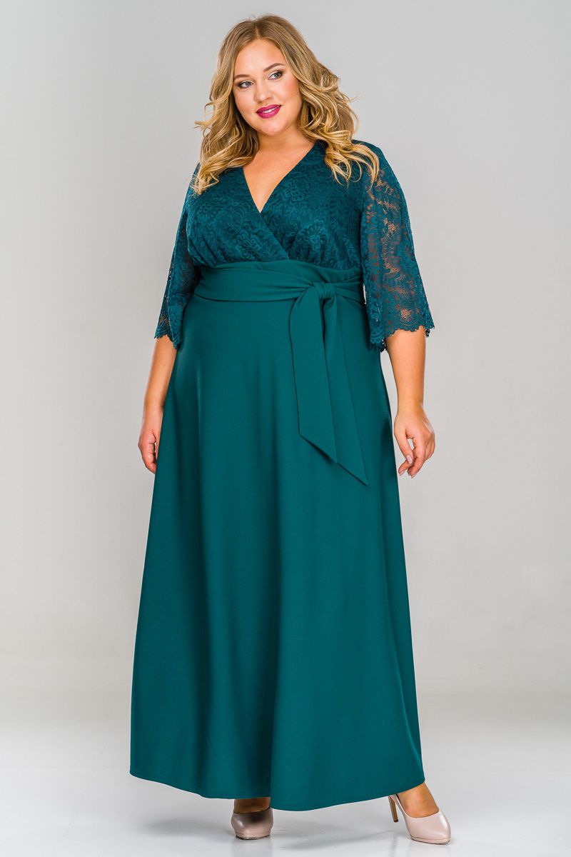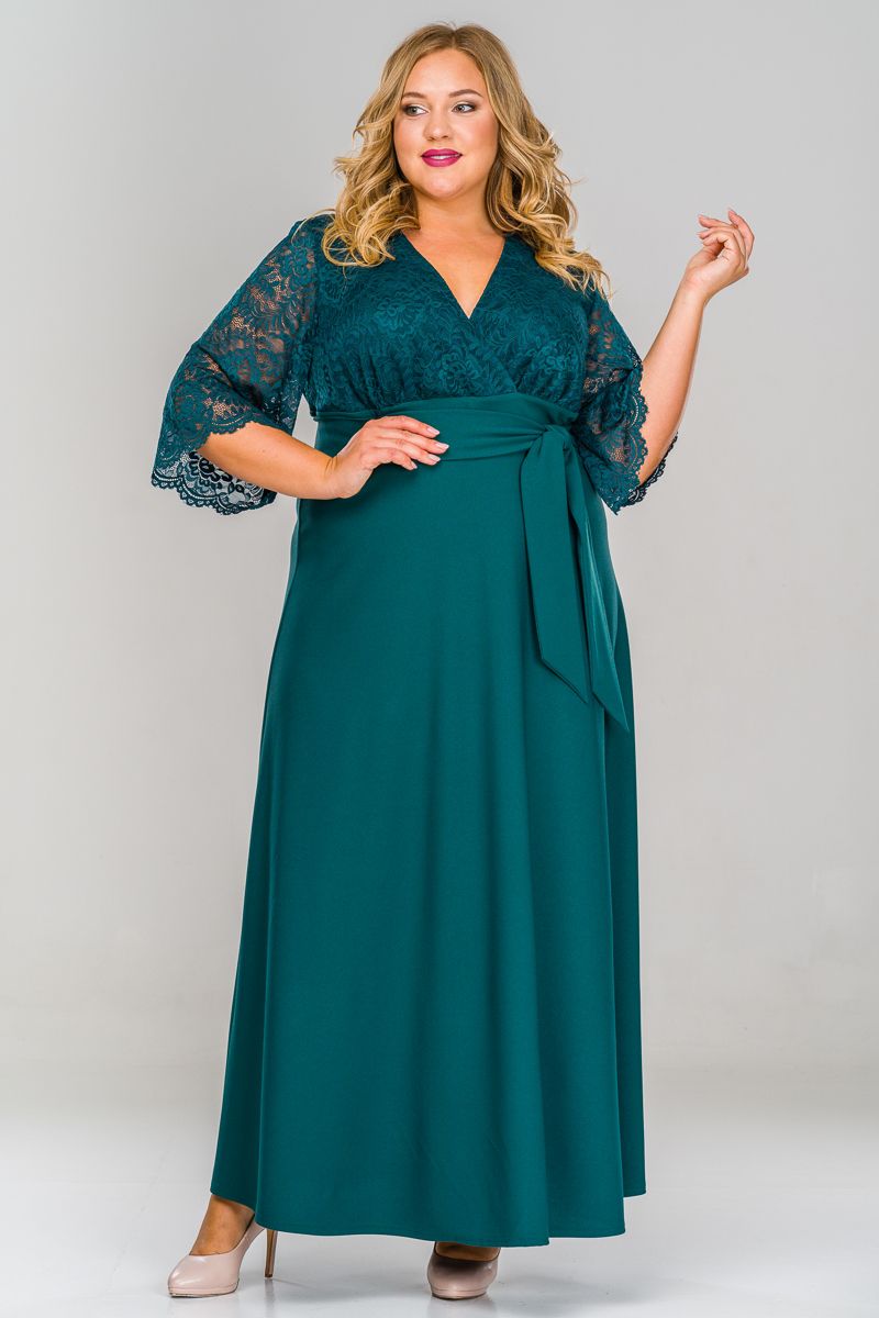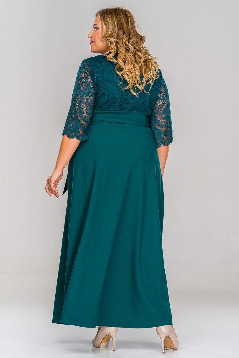 Платье длинное с кружевным лифом, зеленое