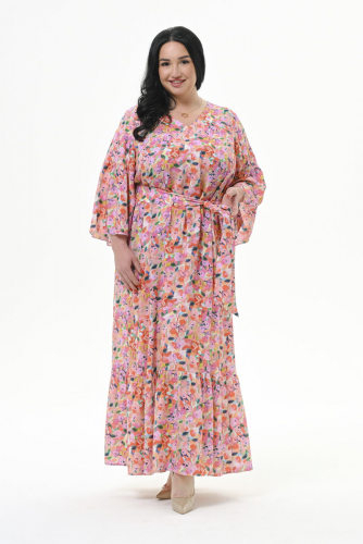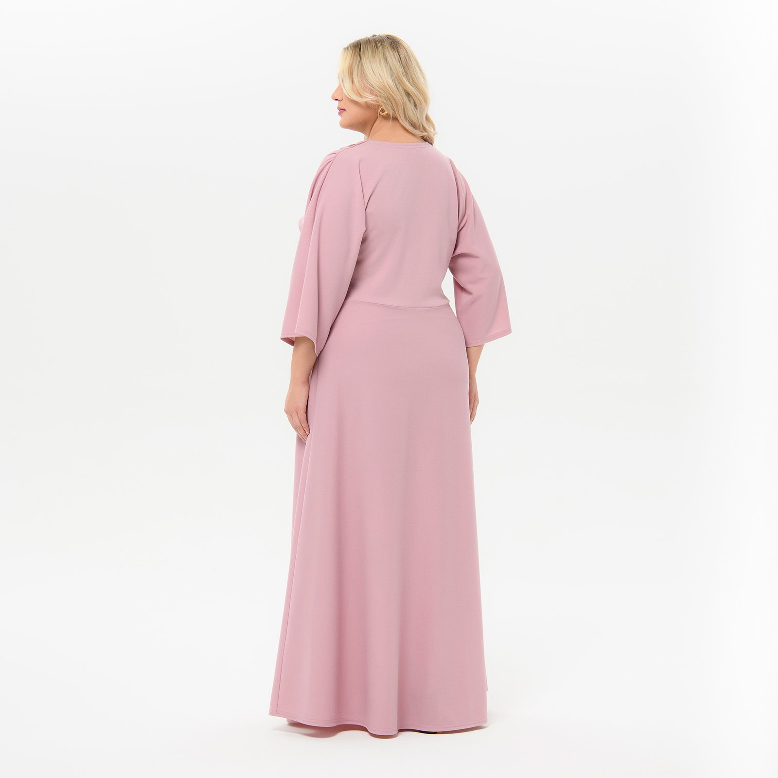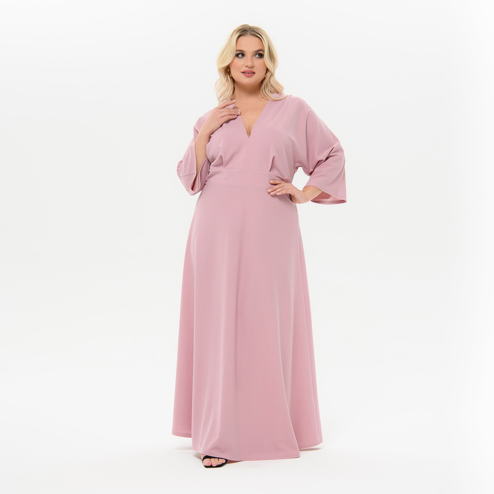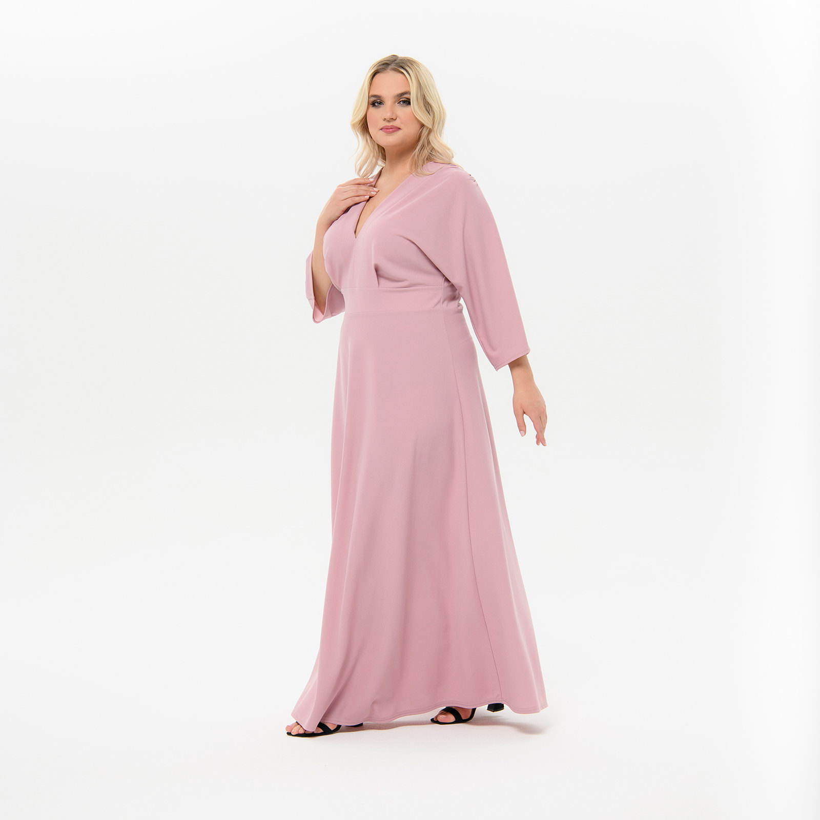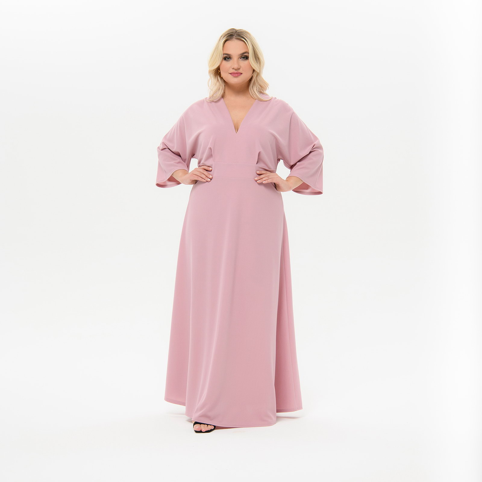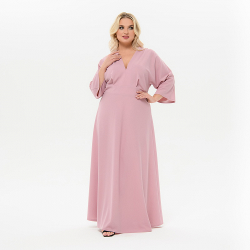 Сомон (Пудровый) Платье длинное, романтичное, с глубоким V - вырезом, из эластичного плательного крепа, полуприлегающего силуэта. Под линией груди подрез.