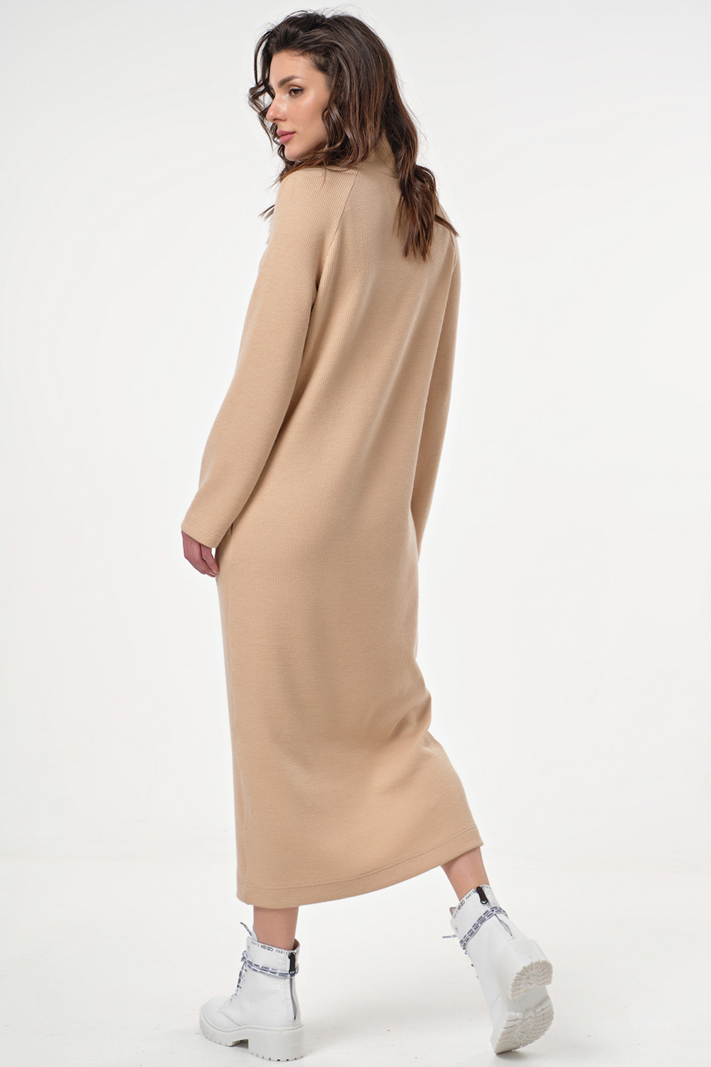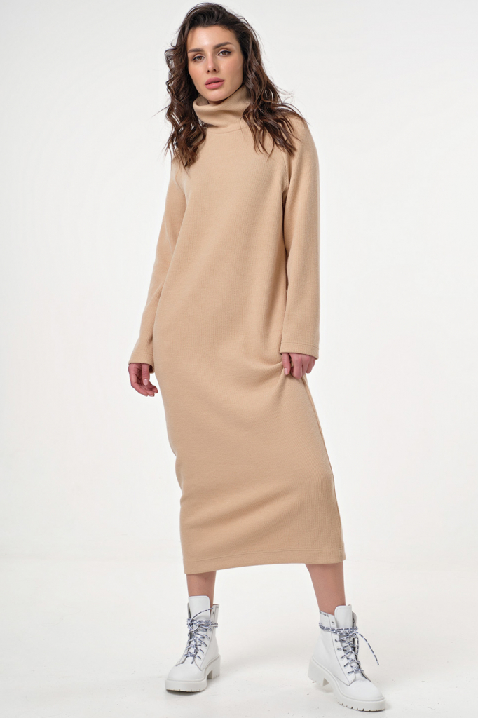 ст. цена2810руб.! Платье длинное трикотажное в рубчик с горлом бежевое