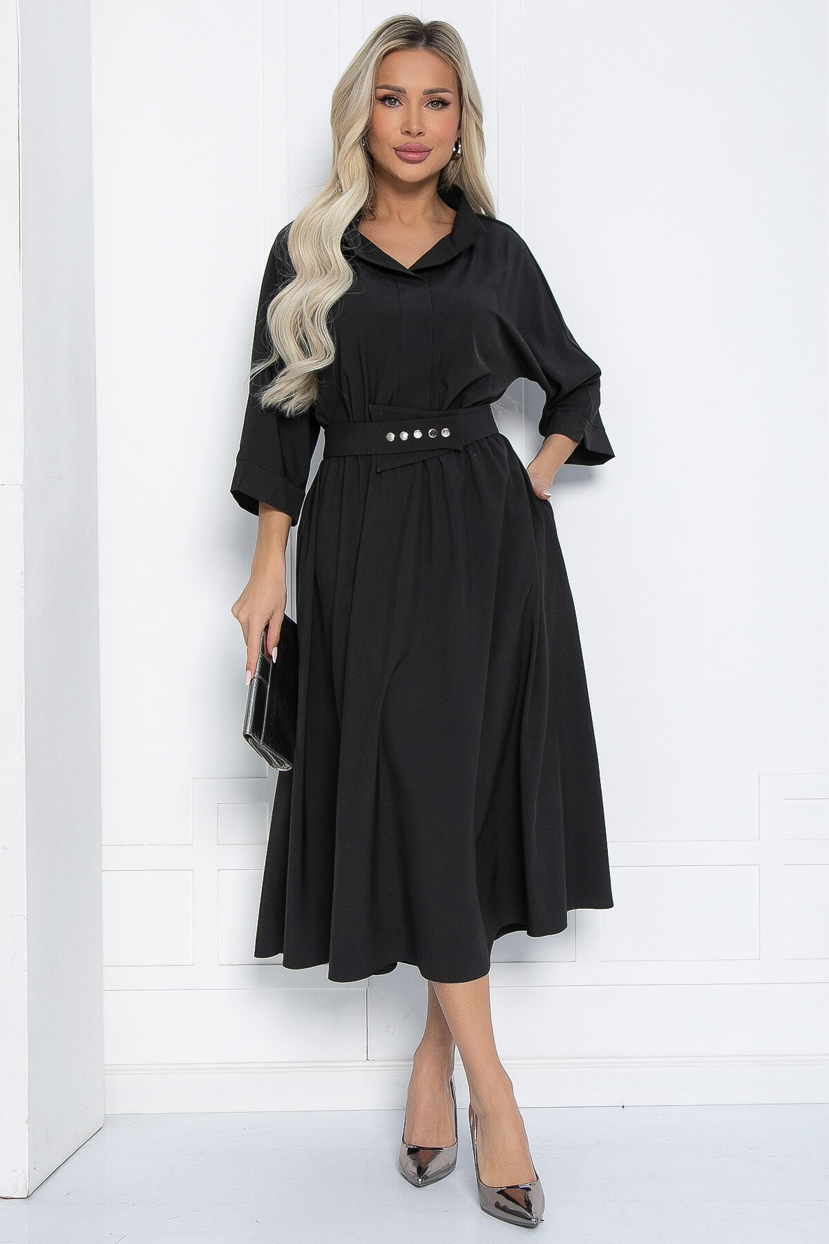 Представляем вам великолепное платье, которое станет вашим незаменимым спутником как в офисе, так и на вечерних мероприятиях. Строгий и изысканный дизайн этого платья гармонично впишется в деловой дресс-код, позволяя вам оставаться стильной и уверенной на любых встречах. Воротник-стойка придает образу строгость и утонченность. Продуманные детали, такие как карманы в боковых швах юбки и резинка по талии, делают это платье не только функциональным, но и невероятно удобным. Позвольте себе быть стильной и современной в этом превосходном наряде!