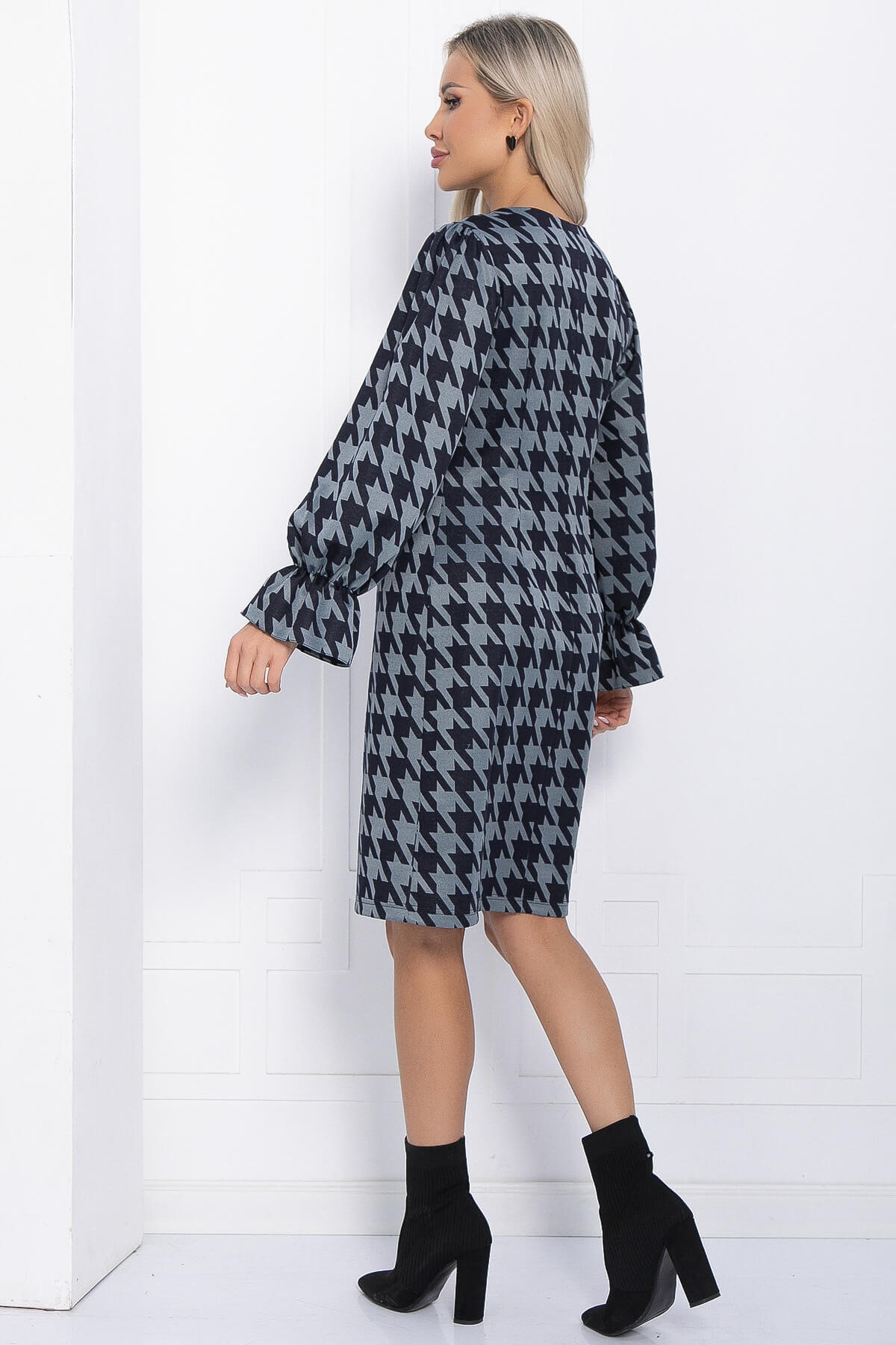 Трикотажное серо-синее платье с принтом «гусиная лапка» — это отличное решение для любого случая! Благодаря округлому вырезу горловины оно выглядит элегантно, а благодаря широким рукавам на резинке — непринуждённо и комфортно.