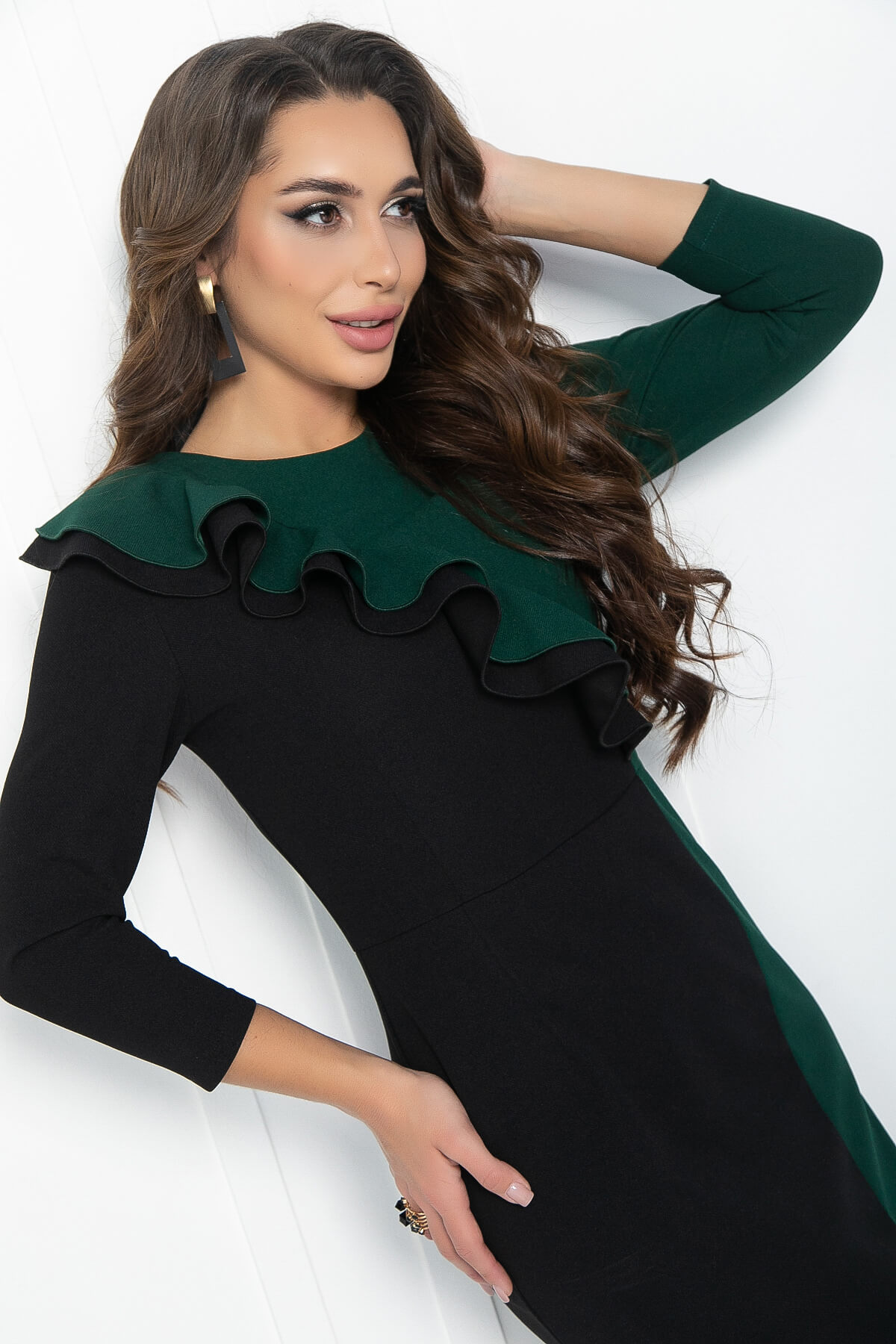 Роскошное платье, спереди комбинированное из двух цветов создающая свою уникальность, за счет двойного волана на лифе. Модель имеет рукава 3/4 и может стать достойным повседневным нарядом на осень и зиму для девушек, любящих выглядеть элегантно в любой ситуации – на вечеринке и на работе.
