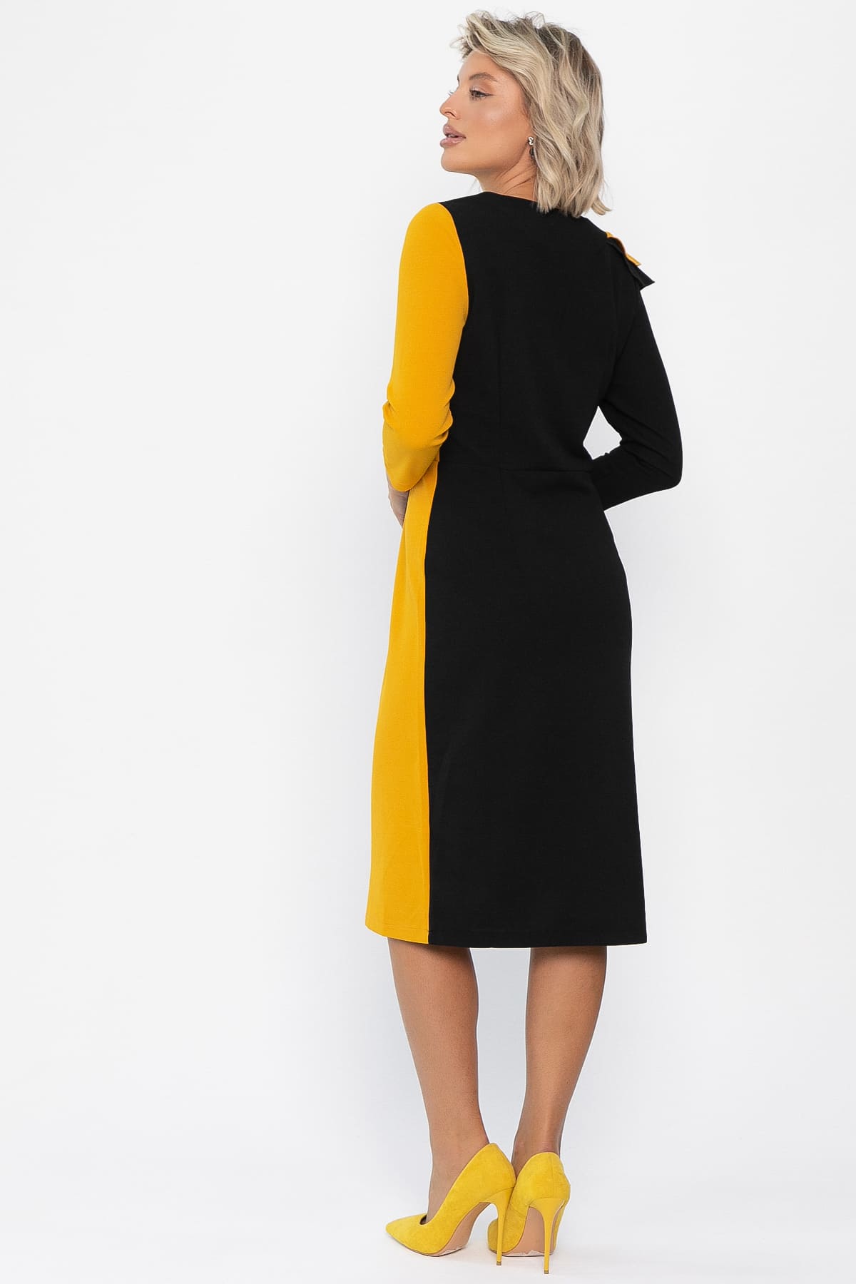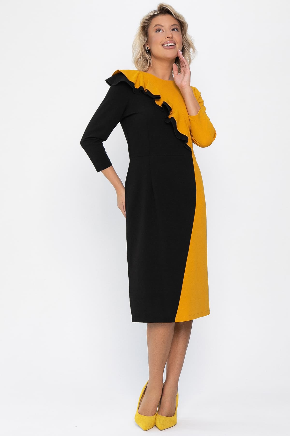 Роскошное платье, спереди комбинированное из двух цветов создающая свою уникальность, за счет двойного волана на лифе. Модель имеет рукава 3/4 и может стать достойным повседневным нарядом на осень и зиму для девушек, любящих выглядеть элегантно в любой ситуации – на вечеринке и на работе.