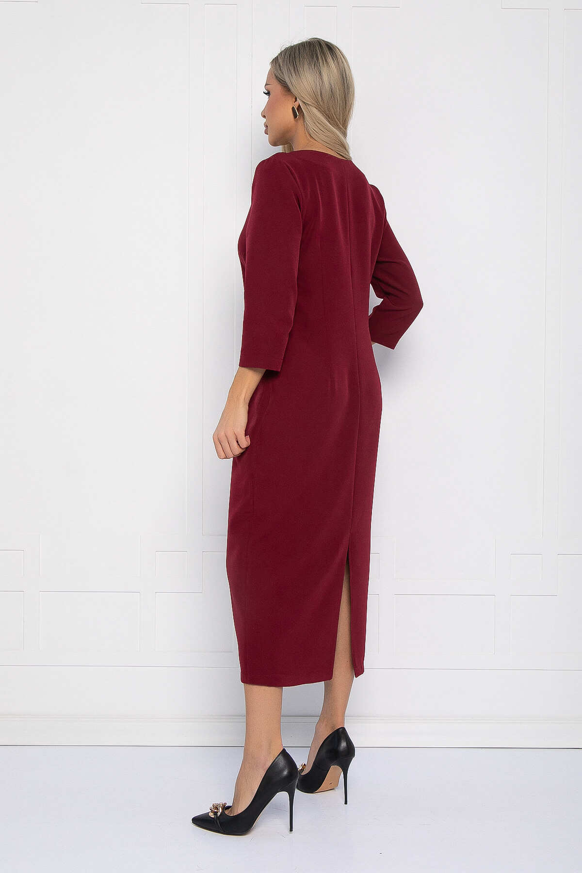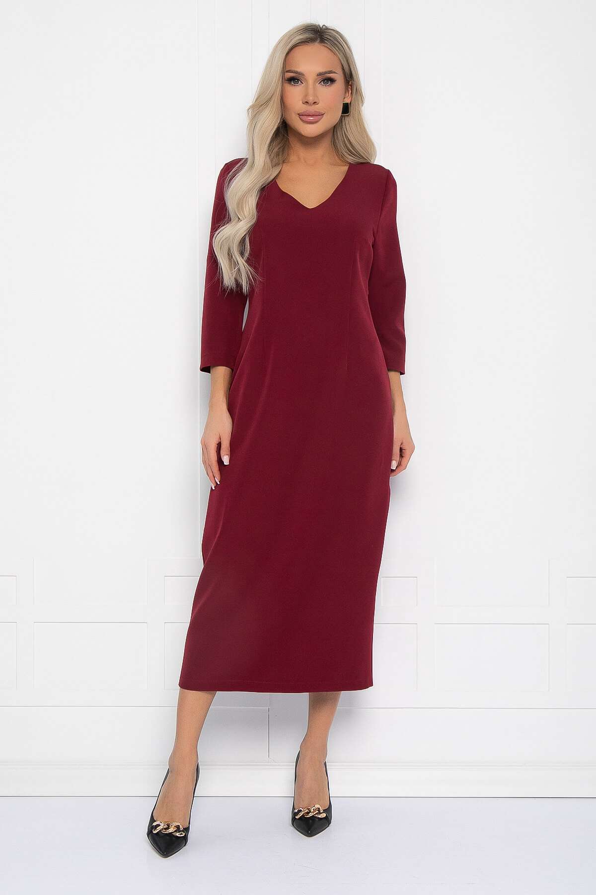 Приталенное бордовое платье — это воплощение элегантности и стиля. Оно прекрасно подчеркнёт вашу утончённость, а красивая V-образная горловина придаст образу особый шарм. Длина макси сделает ваш образ поистине роскошным. Дополните его аксессуарами, чтобы создать незабываемый образ. Сбоку платья есть молния. В комплекте идёт ремень, который можно использовать для акцентирования талии.