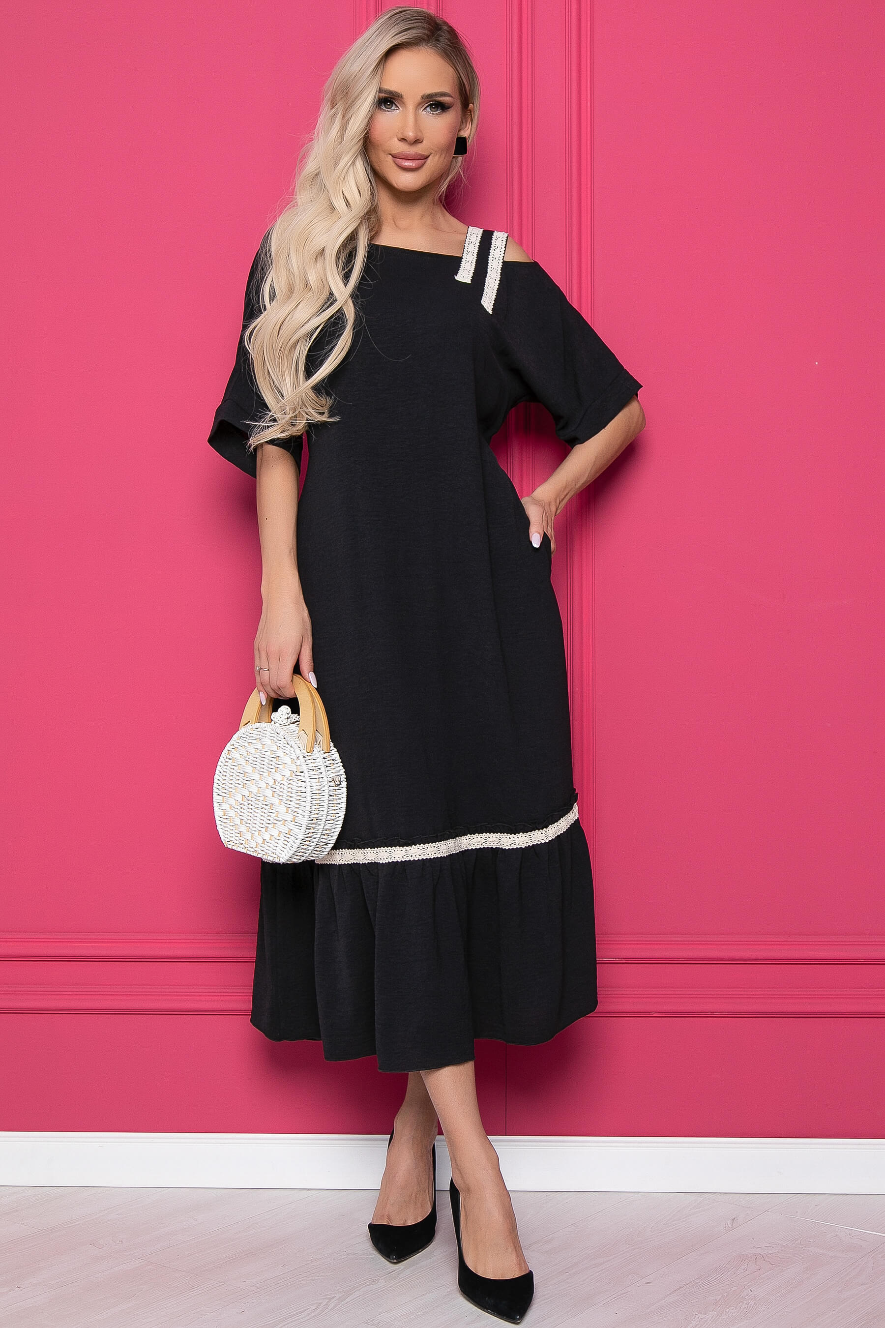 Легкое и воздушное платье с воланом снизу и открытым плечом добавит вашему повседневному или вечернему выходу эффектности.