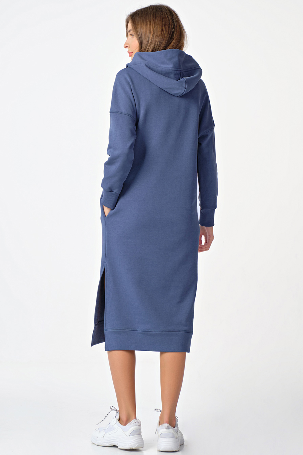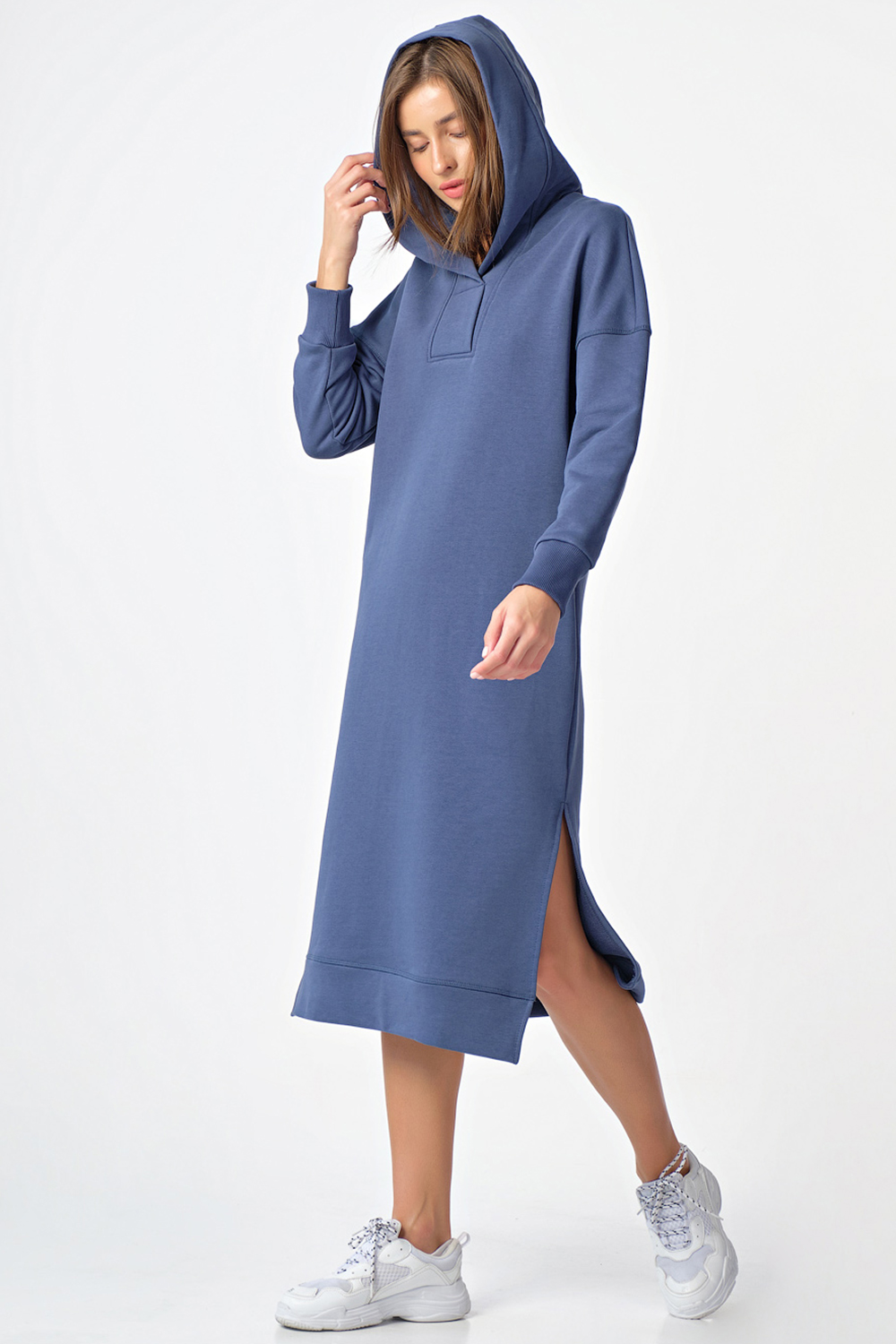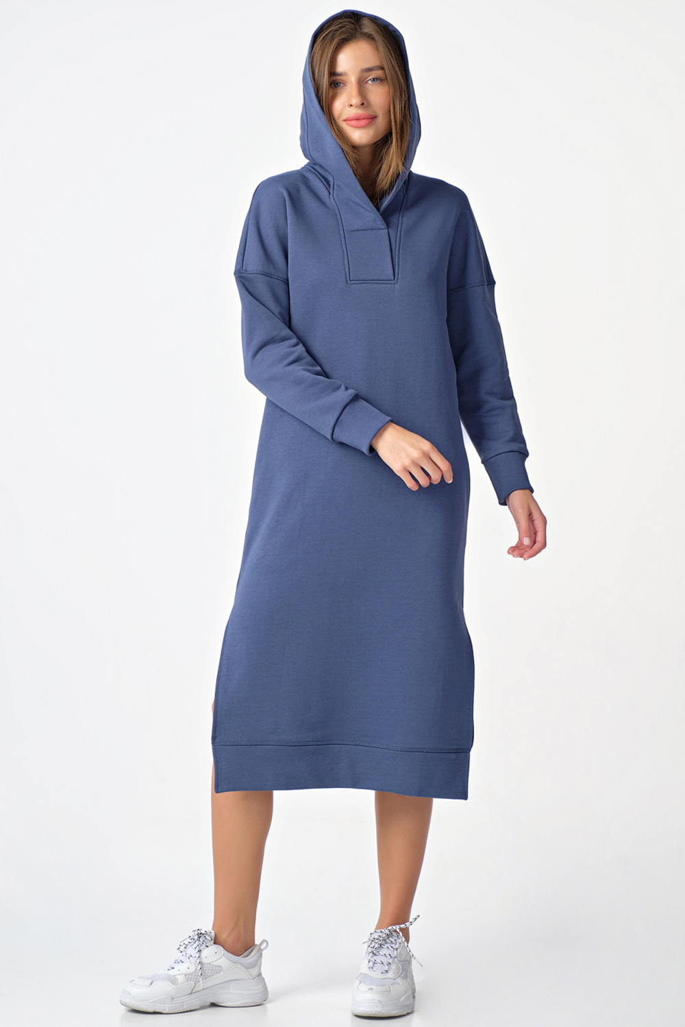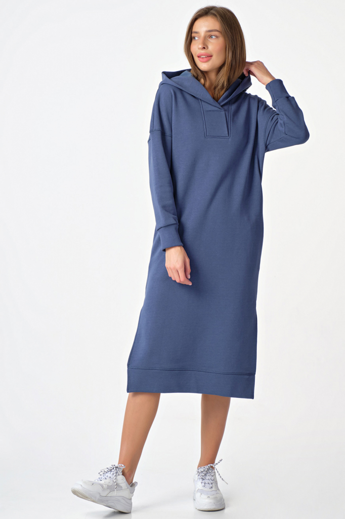 ст. цена3696руб.! Платье-худи теплое с капюшоном из футера индиго