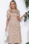 Обворожительное платье с акцентными рукавами из принтованной сетки. В таком платье вы будете самой привлекательной на любом торжестве. Втачные длинные рукава с резинкой на манжете придают изделию легкость и женственность V.-образный вырез горловины подчеркивают утонченность образа. Лиф платья декорирован драпировкой. По боковому шву изделия разрез. Платье без подклада.