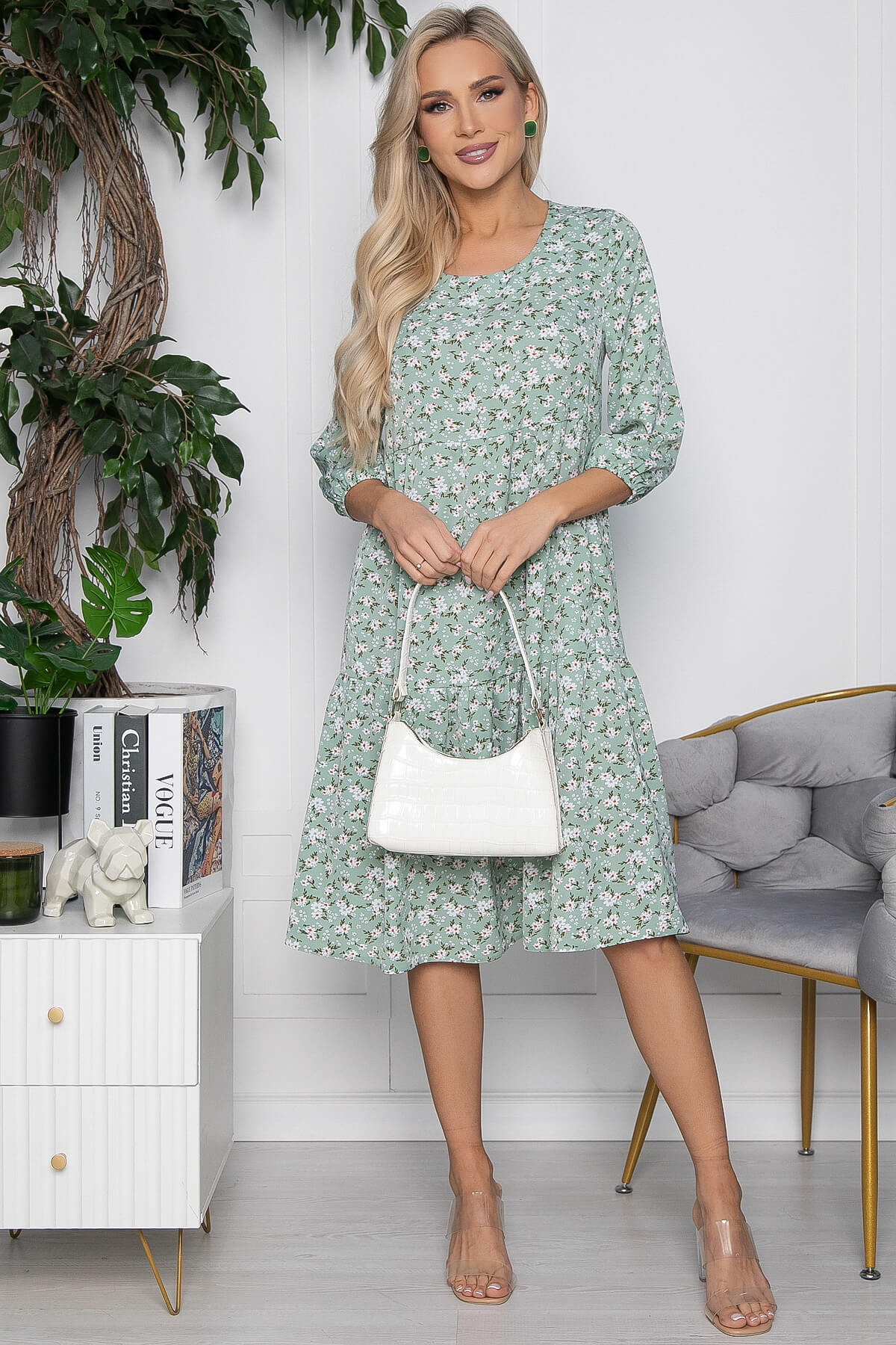 Женственное платье длины миди, которое прекрасно подойдет для прогулки или свидания! Хорошо сочетается с каблучком и обувью на низком ходу. Рукава втачные 3/4 на резинке, в боковых швах карманы. По низу волан.