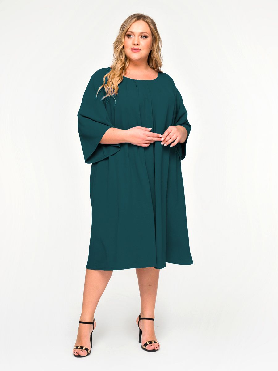Изумрудный Платье из однотонного крепа трапецеевидного силуэта. По вырезу горловины заложены мягкие складки, вырез округлый. Рукав расклешенный.