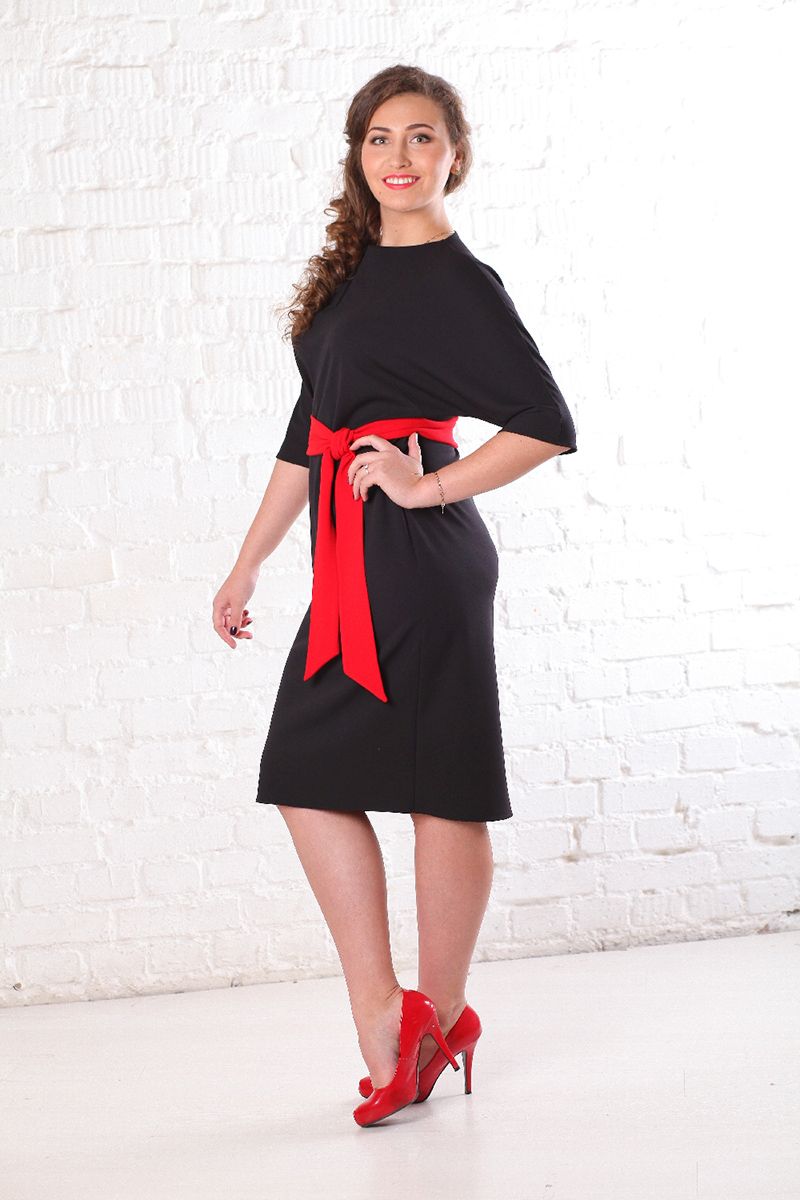 Черный Классическое платье с цельнокроеным рукавом и вырезом "щель". Прямое платье с цельнокроеным рукавом - прекрасная база для любого комплекта. Простое, элегантное и стильное. В комплекте с платьем идет пояс контрастного цвета.