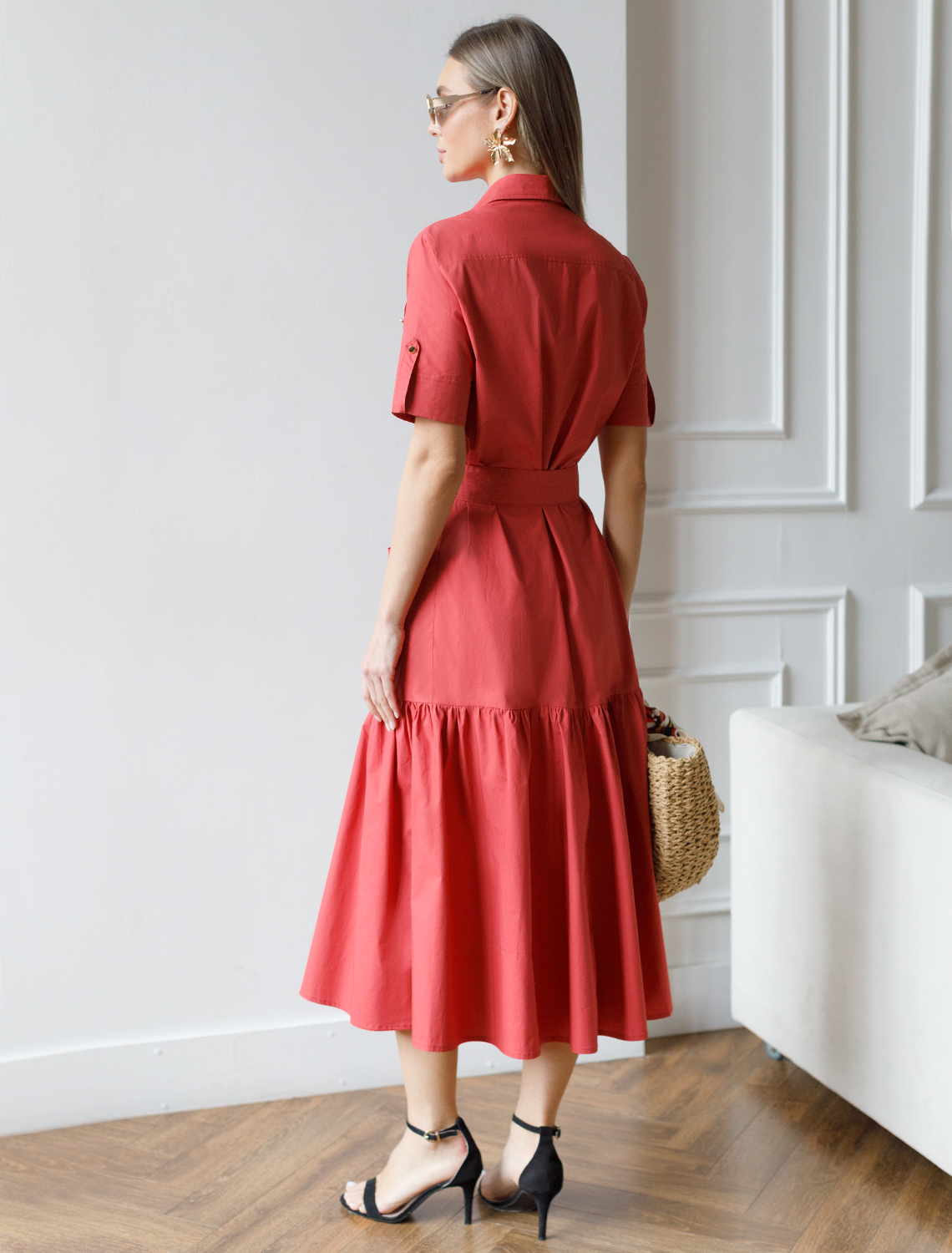 Платье из легкого хлопкового поплина D22.206 темно-красный