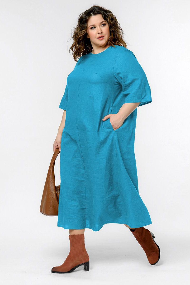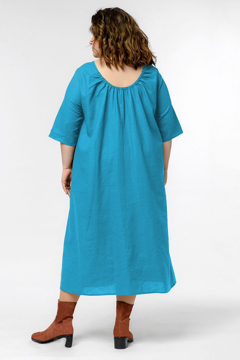 Платье из льна с резиночкой по спинке, цвет "топаз"