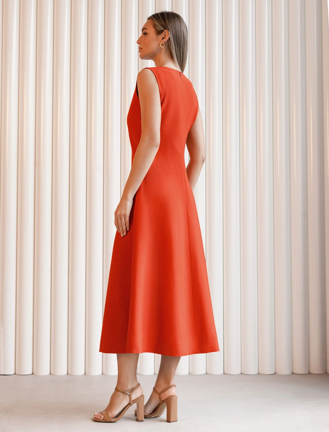 Платье с V-вырезом выполнено из плотного лиоцелла. Лаконичная модель с открытыми плечами и слегка расклешённым низом. Ткань изделия отлично держит форму, плавно драпируется и не просвечивает. В теплое время года приятно охлаждает кожу. Добавление синтетических волокон в составе изделия, предотвращает сминаемостьи поддерживает формоустойчивость. терракотовый