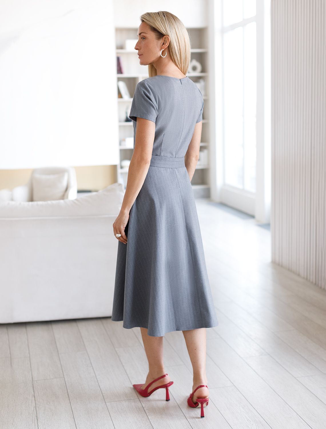 Платье с юбкой "полусонце" выполнено из премиальной эластичной поливискозы . Модель идеально садится по фигуре, образуя строгий деловой силуэт. Расклешенная юбка при этом вносит женственности образу и дарит абсолютную свободу движений. Материал изделия поддерживает оптимальный микроклимат, формоустойчивость и комфорт в течение всего дня. серый