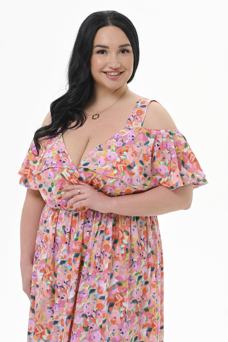 Платье из штапеля с "крылышком" по лифу, принт "розы" *
