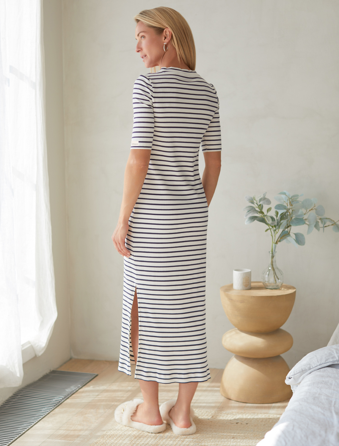 Отзывы и вопросы о товаре «Платье из трикотажа в широкий рубчик с разрезами D42.096 кокосовый-т.синий»
