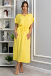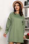 Повседневное платье на каждый день. За счет прямого кроя изделие стройнит и подчеркивает достоинства фигуры. Модель со спущенным плечом, рукава укороченные на манжете. Горловина округлая,  низ платья с  разрезами по бокам, в комплекте идет пояс из основной ткани.