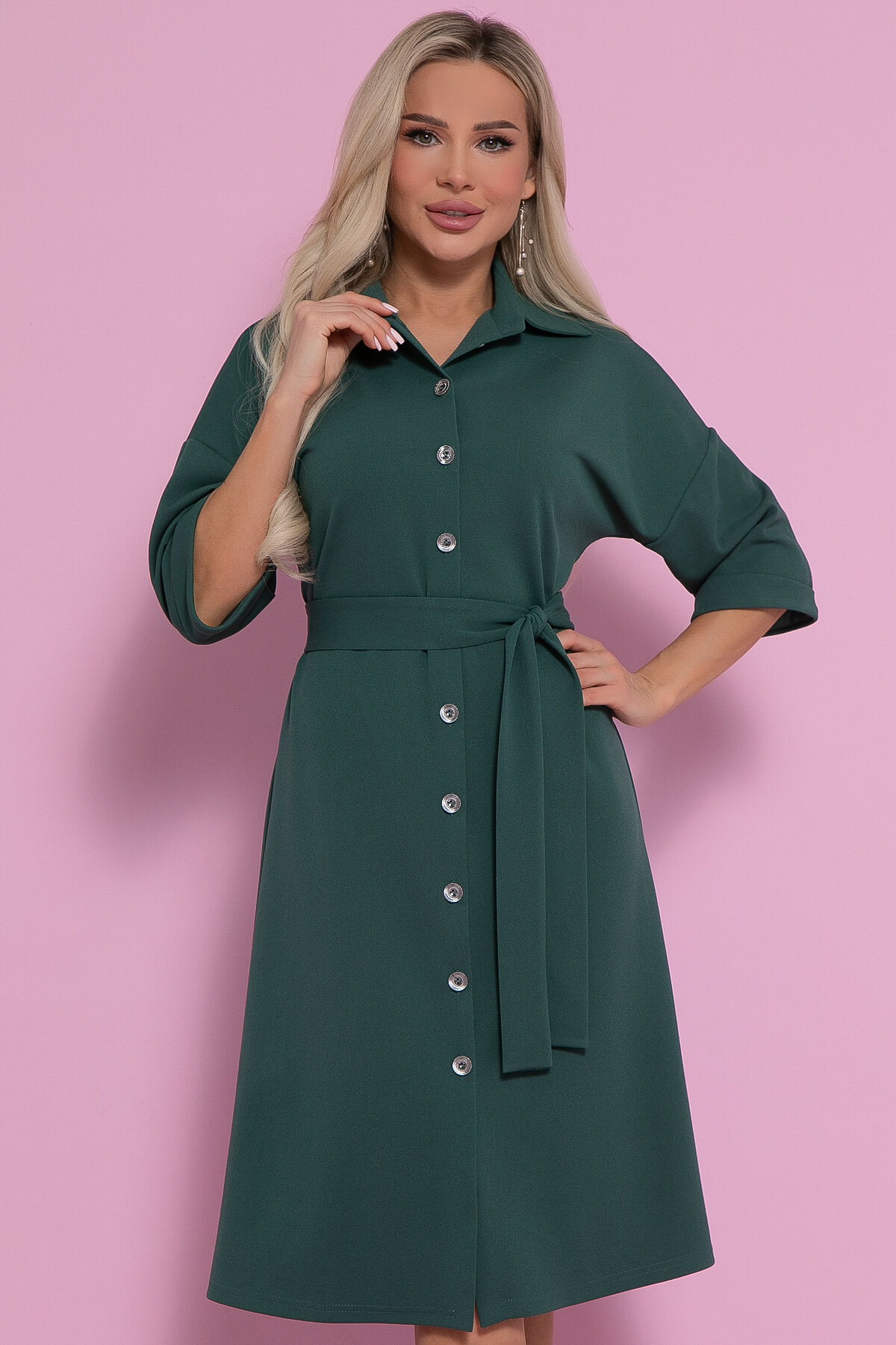 Это комфортное платье - станет вашим верным спутником в любых ситуациях. Воротник рубашечного типа переходящий в застёжку на пуговицах, спущенное плечо и рукав на манжете - все это, настоящая находка для девушек предпочитающих простоту и строгость в одном. Пояс из основной ткани в комплекте.