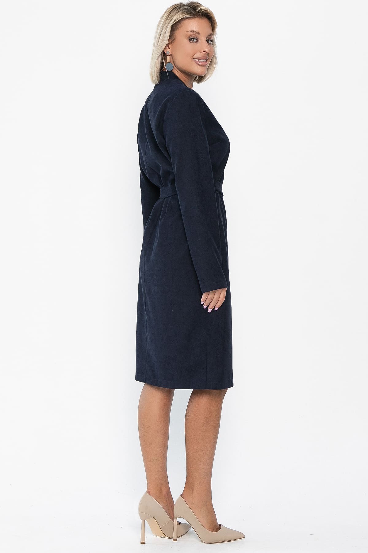 Платье из вельвета в синем цвете — это изысканный и элегантный выбор для вашего гардероба! Пояс из основной ткани на полукольцах, который идёт в комплекте, помогает подчеркнуть талию и придать образу завершённость. Это платье легко сочетается с разными образами — от делового до повседневного. Аксессуары помогут подчеркнуть изысканность платья и создать гармоничный образ.