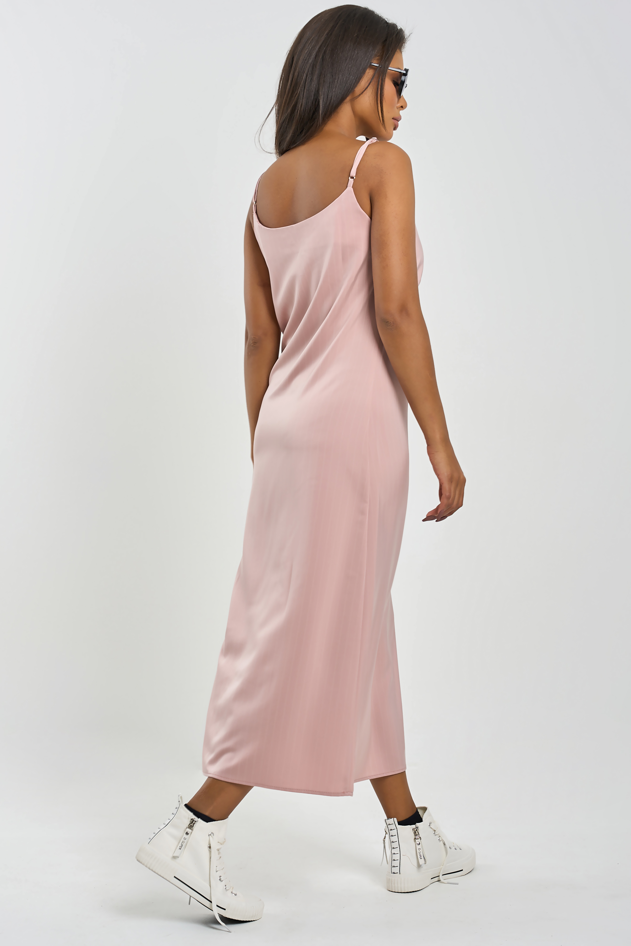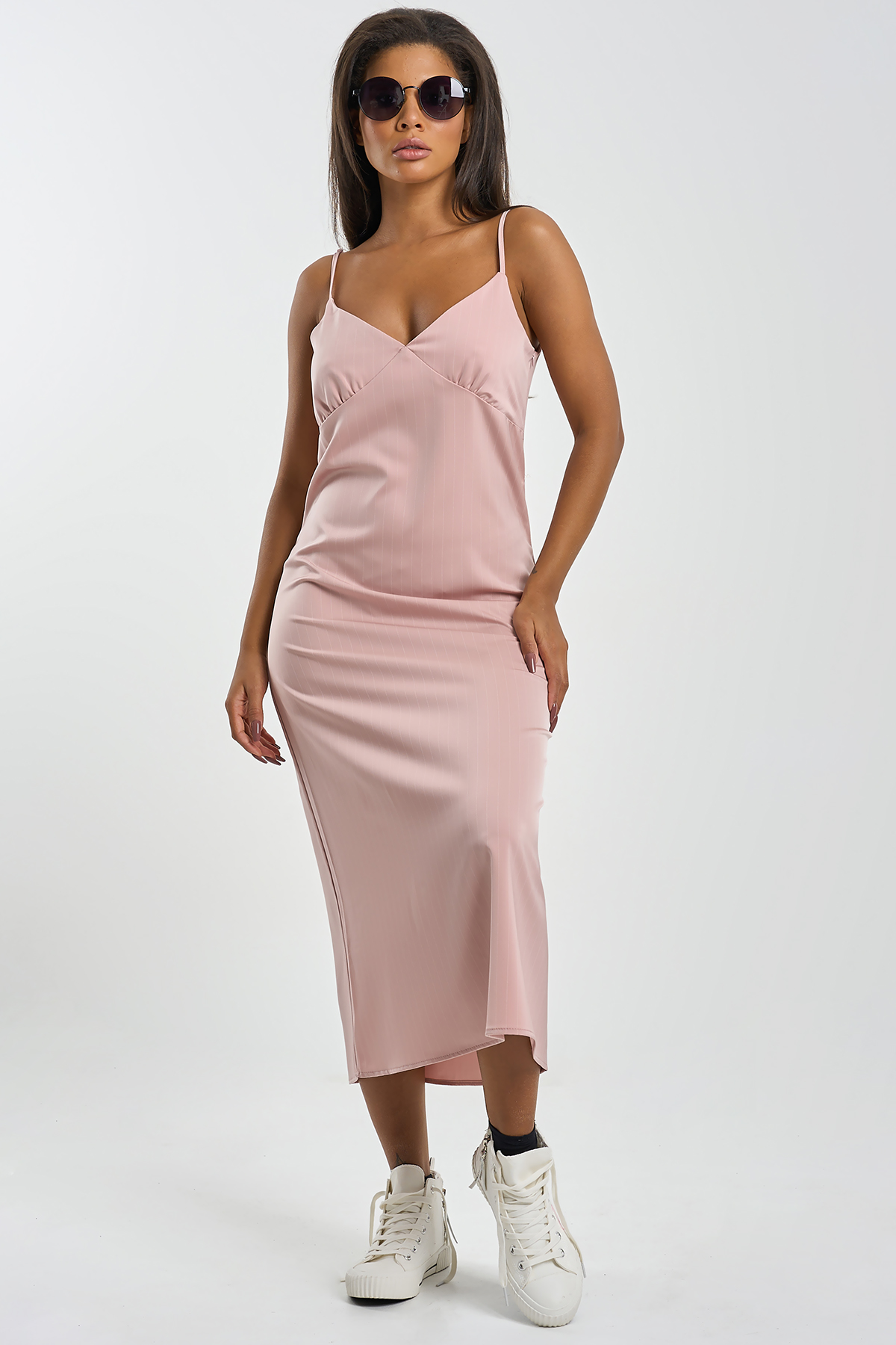 ст. цена2838руб.! Платье-комбинация миди в полоску пыльно-розовое