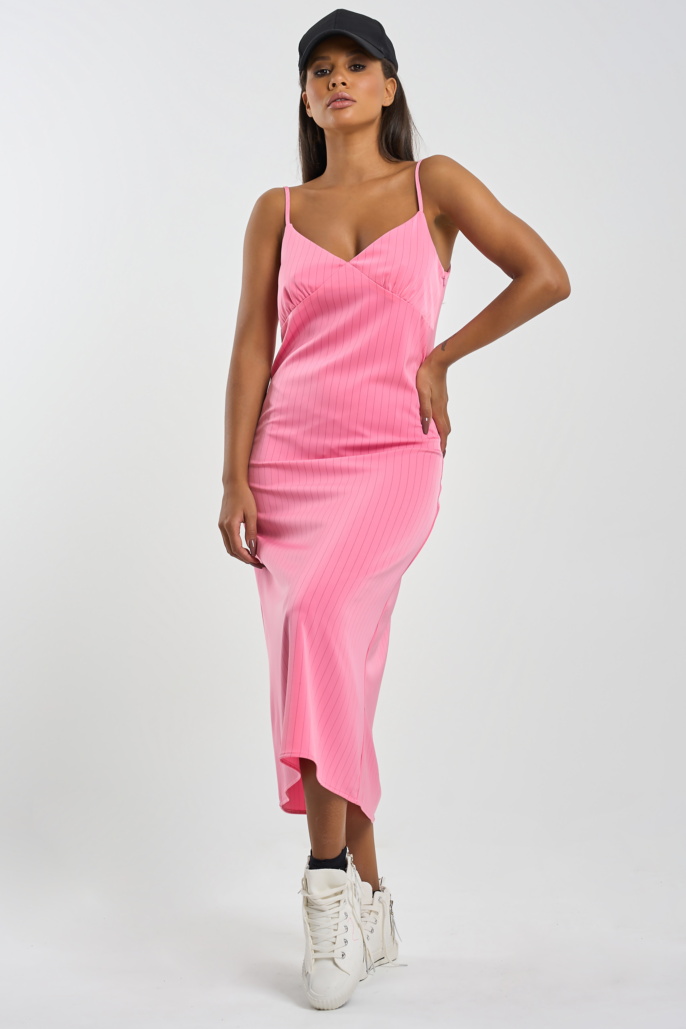 ст. цена2838руб.! Платье-комбинация миди в полоску розовое