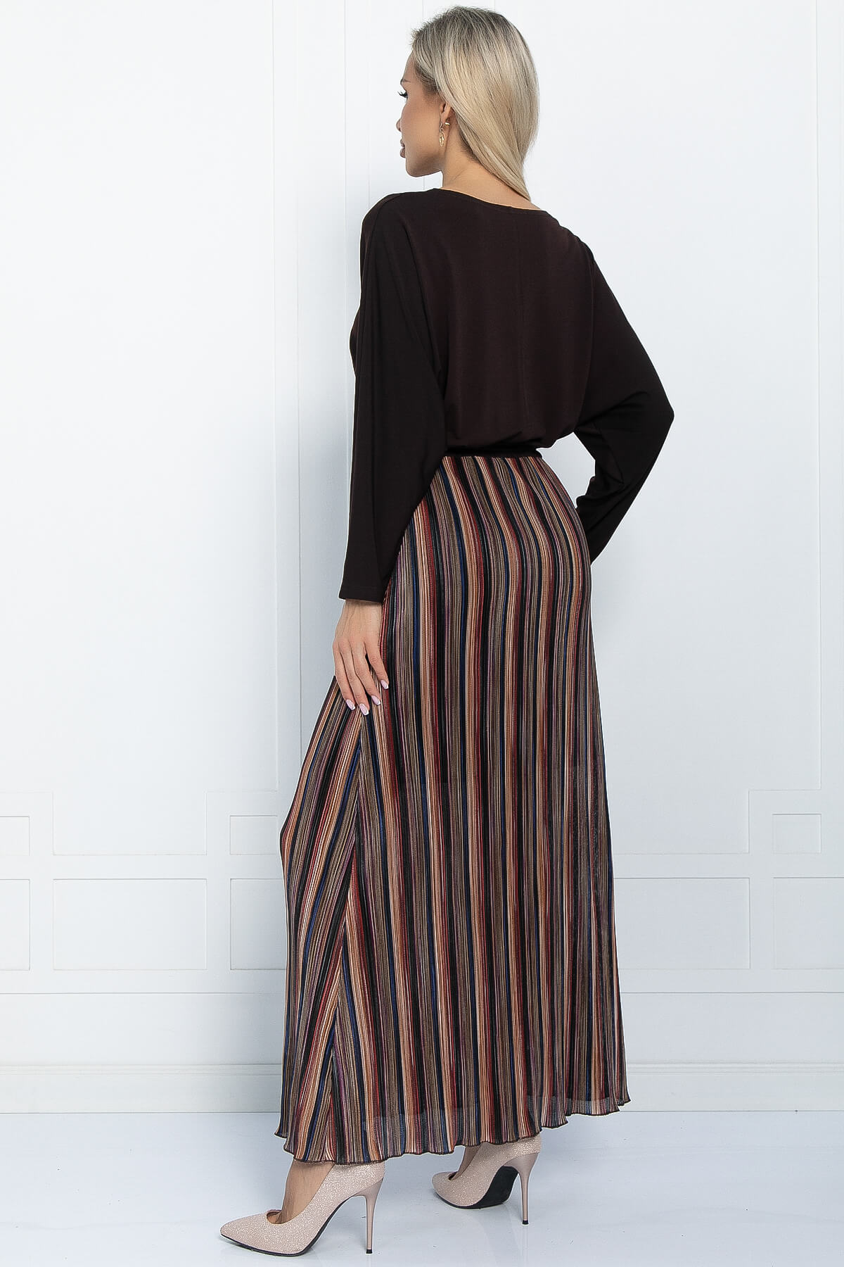 Принт: юбка гофре в мелкую полоску.