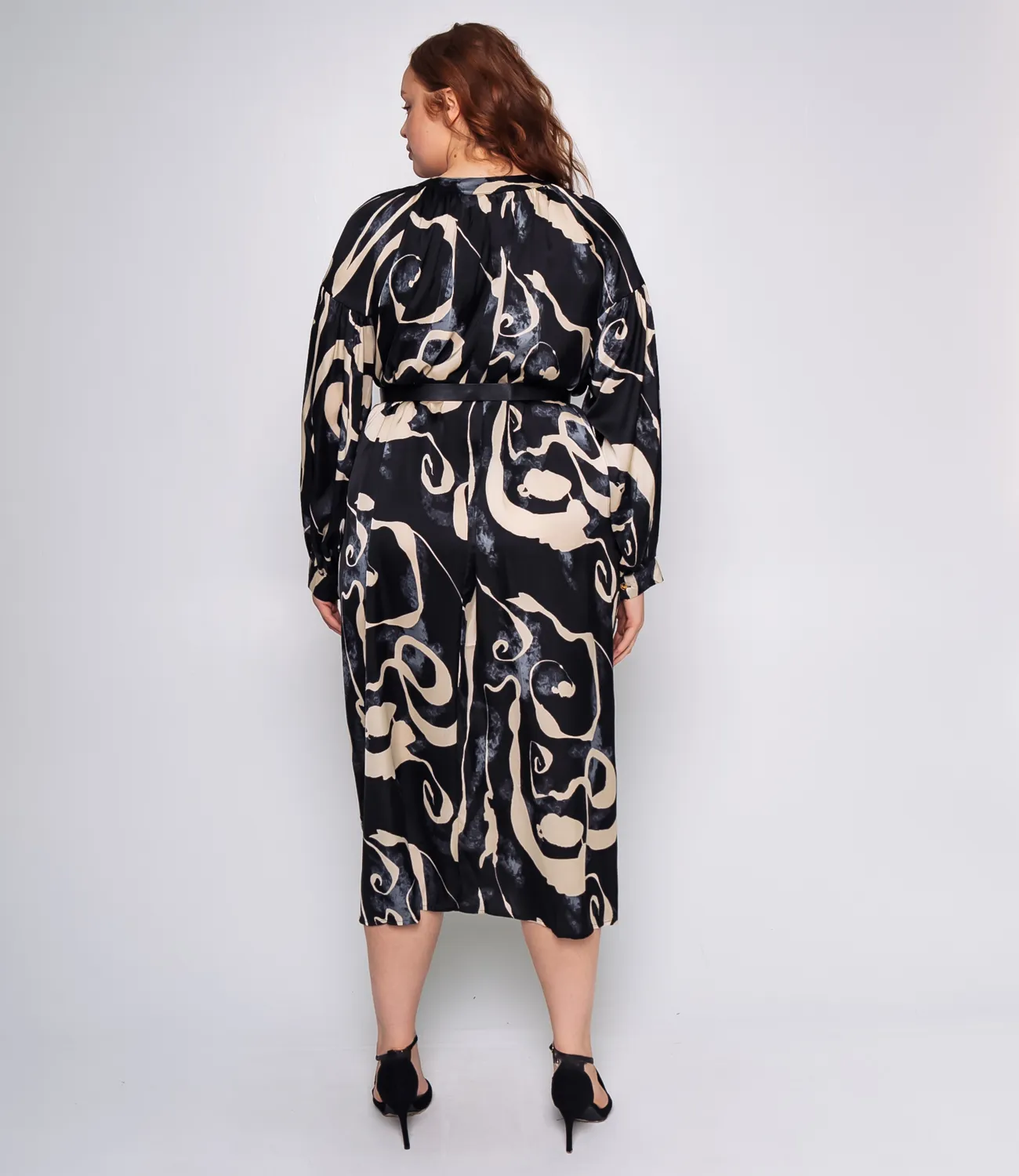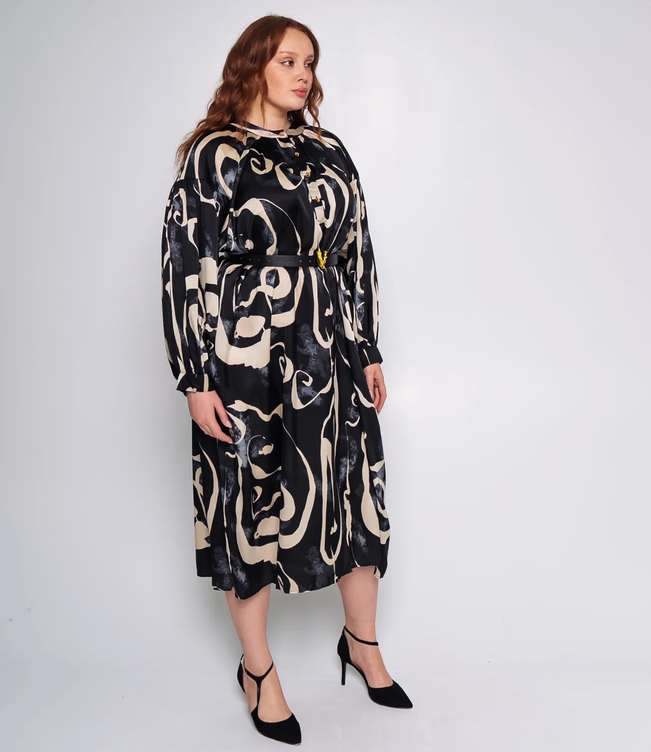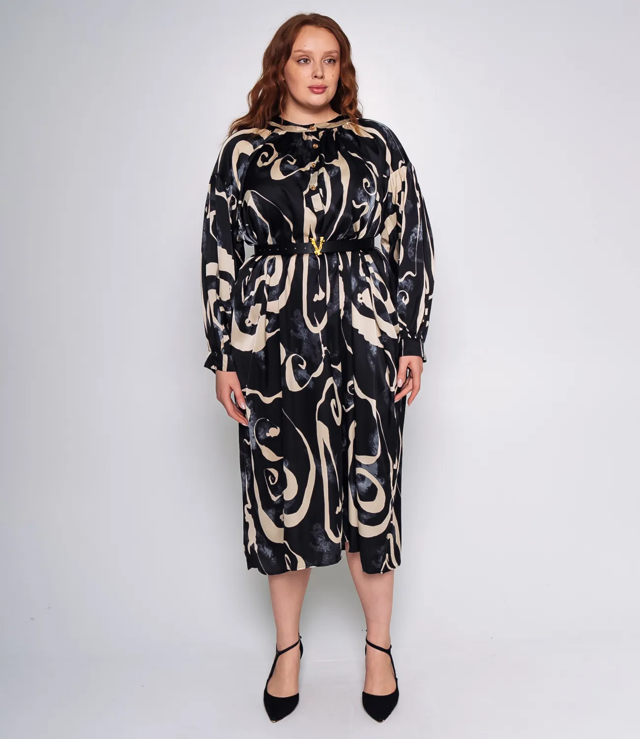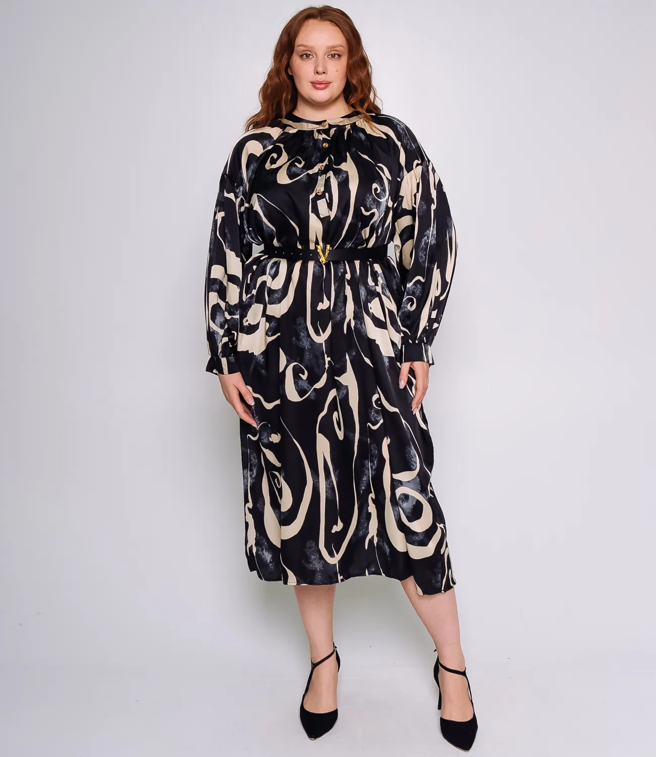Это платье — прекрасный выбор для вашего магазина, предлагая стильный и универсальный дизайн, который станет отличным дополнением к гардеробу ваших клиентов. Платье имеет свободный, расклешенный силуэт, который обеспечивает легкость и комфорт. Длинные рукава с манжетами добавляют классики, а мягкий воротник придаёт уютный вид. Платье представлено в оригинальном абстрактном принтето придает наряду современные и художественные нотки. Это платье станет отличным выбором для офисных и вечерних мероприятий, праздников, а также для встреч с друзьями. Изготовлено из ткани 100% полиэстер, платье обеспечивает отличное качество и приятные тактильные ощущения. Независимо от сезона, она станет любимым элементом в гардеробе ваших клиентов. На странице сайта доступна таблица размеров, что позволит вашим покупателям легко найти подходящий вариант. Установленная цена делает это платье доступным для широкой аудитории, что обеспечит вам высокий уровень продаж. Рост модели 168, 89-63-90.