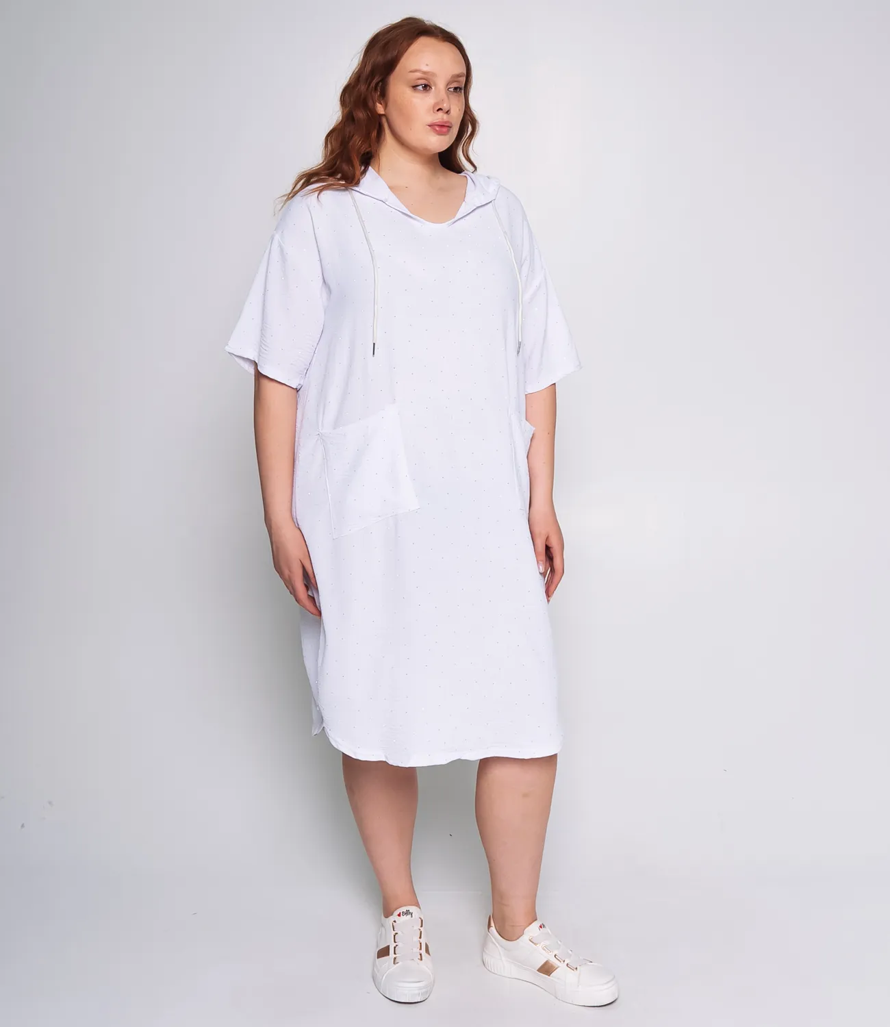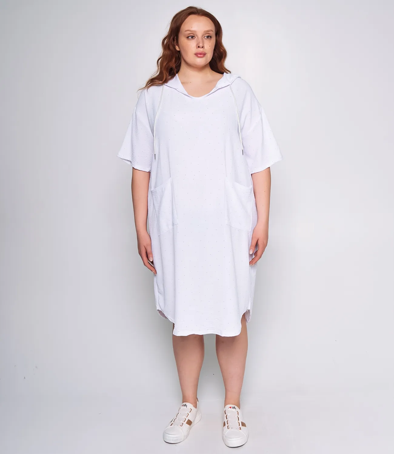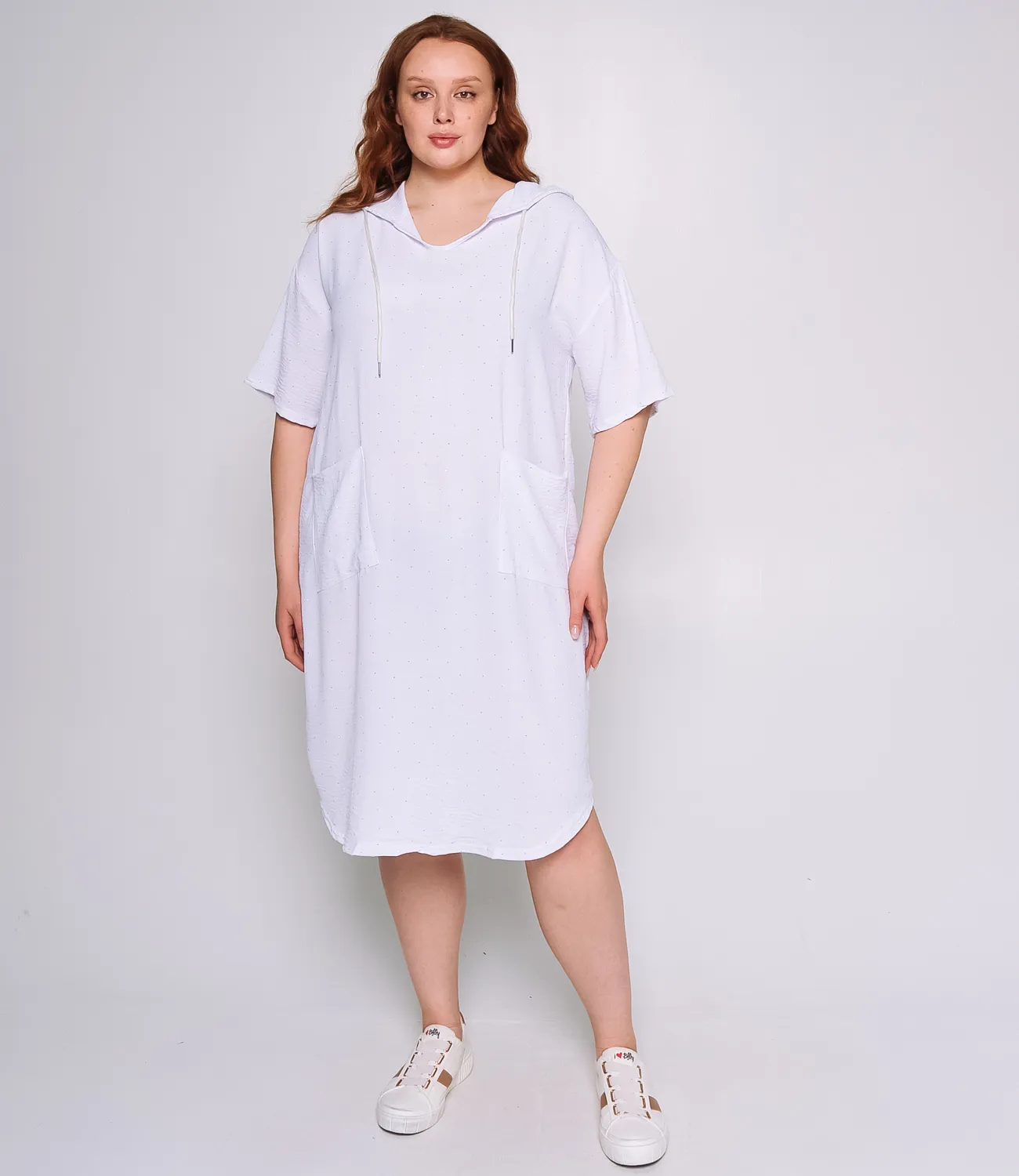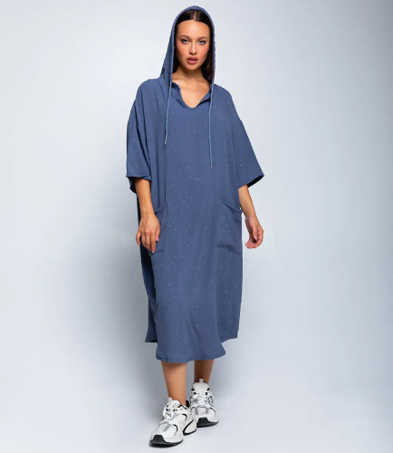 Платье – это часть гардероба, которая подчеркивает уникальность каждой женщины. Данная модель свободного платья с капюшоном отлично подойдет для летнего сезона. Ее выбирают покупательницы, которые ценят сочетание эксклюзивности и цены. Силуэт подчеркивает изящность фигуры. Производитель знает, как найти стильные решения. Для изготовления использована ткань 65% хлопка, 35% полиэстра, которая характеризуется отличным качеством. Даже после большого количества стирок платье не потеряет своей первоначальной привлекательности. Вы обязательно будете его носить с радостью. Обратите внимание на цвет. Он является насыщенным и полностью соответствует фотографии на сайте. Чтобы вы были уверены в размере, мы представили на сайте таблицу. Воспользовавшись ей, вы сможете сами сделать мерки и убедиться. Предложенная нами цена является приемлемой. Подарите себе удовольствие быть неповторимой! Рост модели 168, 83-63-92.