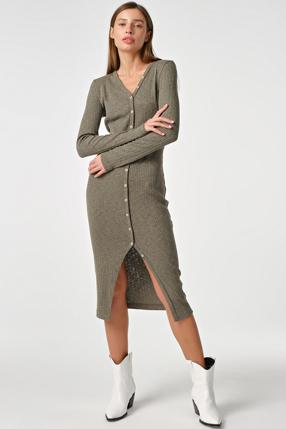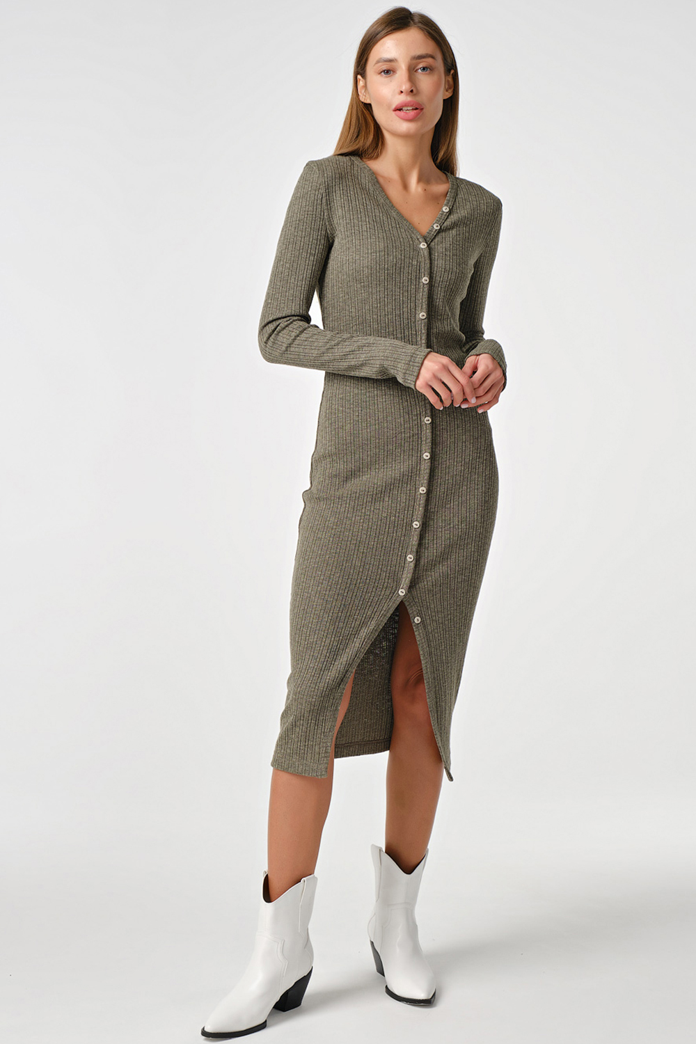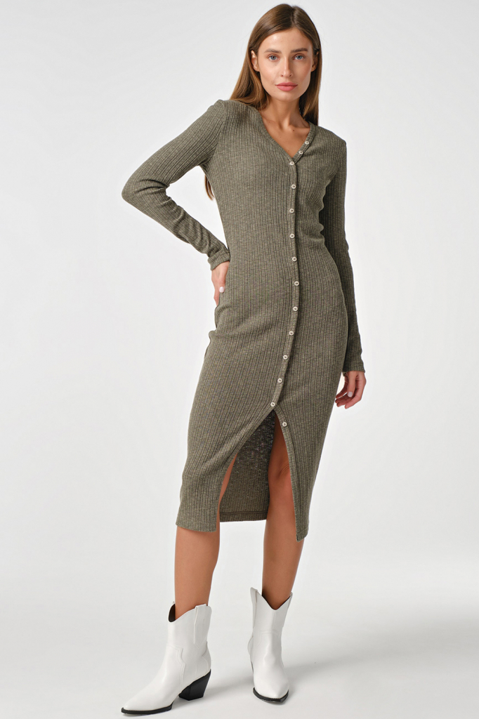 ст. цена2860руб.! Платье-лапша трикотажное на пуговицах хаки