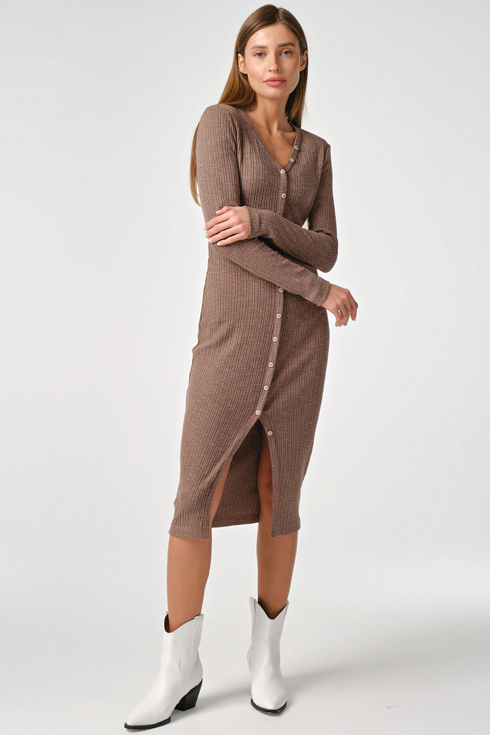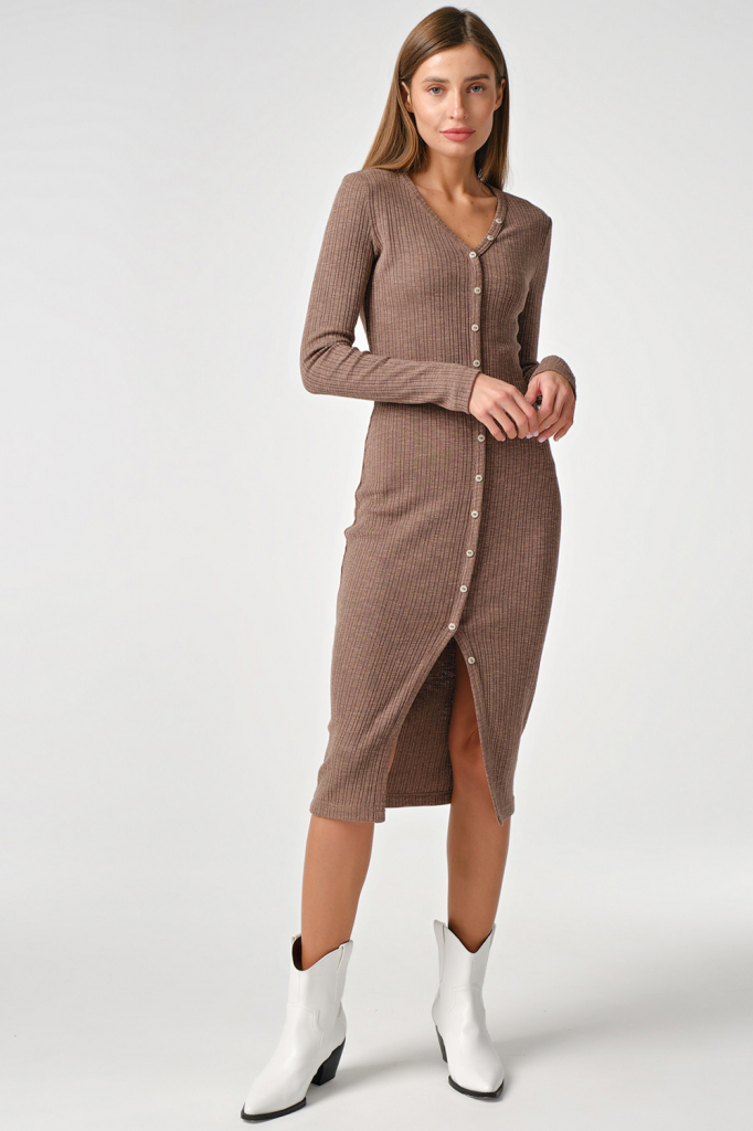 ст. цена2860руб.! Платье-лапша трикотажное на пуговицах какао