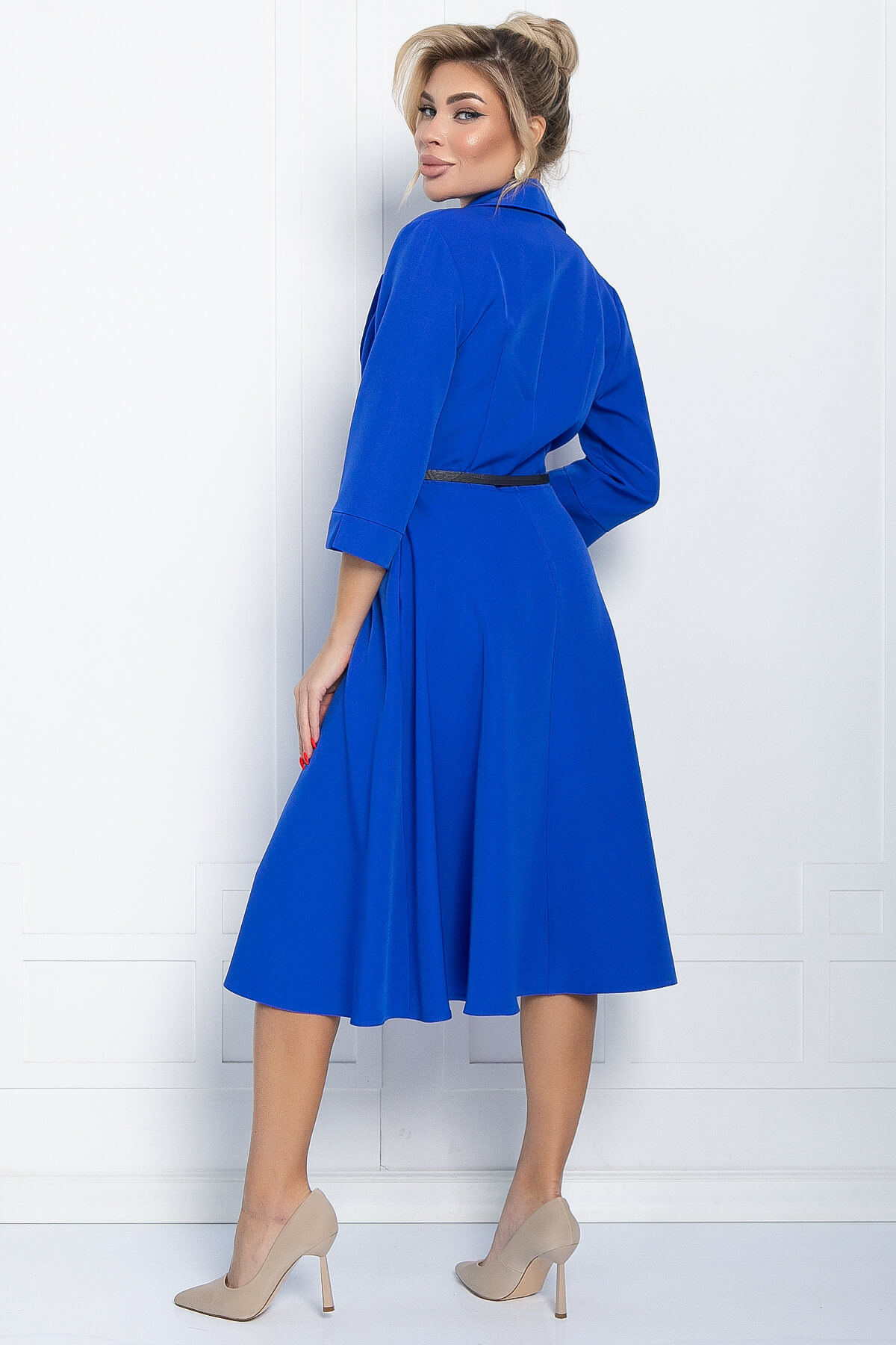 Создайте безупречный деловой образ с элегантным платьем длиной миди. Это платье идеально подходит для офисных встреч и официальных мероприятий, сочетая стиль и комфорт. Приталенный силуэт подчеркивает фигуру, а расклешенная юбка добавляет изящества и динамичности. Рукава 3/4 с манжетами придают образу завершенность и стиль. Потайная молния в боку обеспечивает удобство и позволяет легко надевать платье. Воротник запах на стойке.