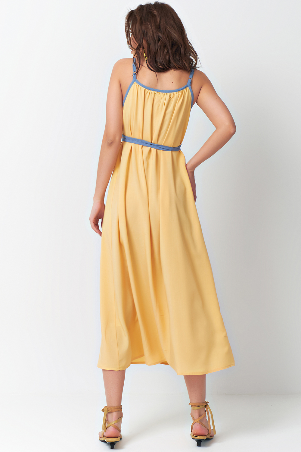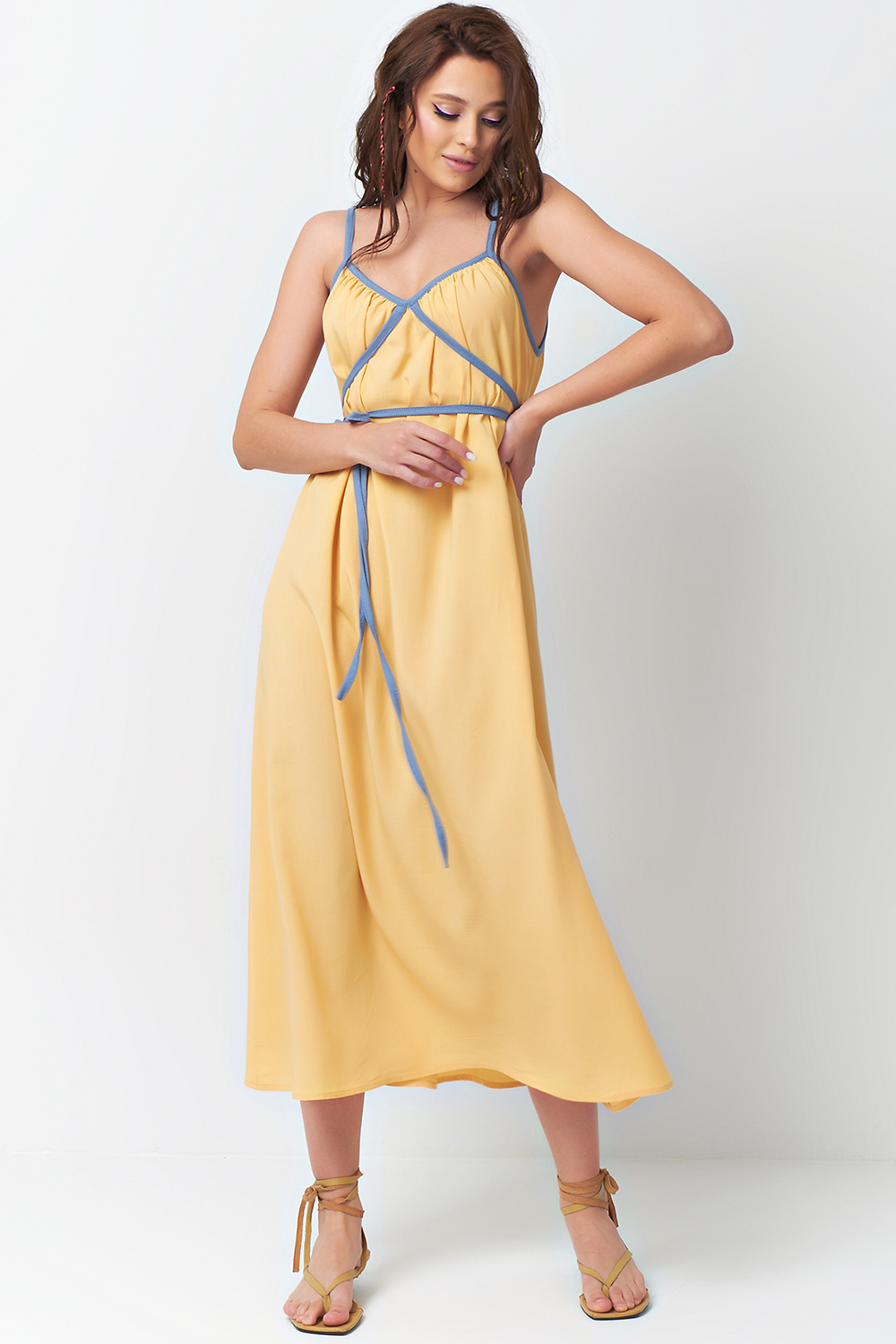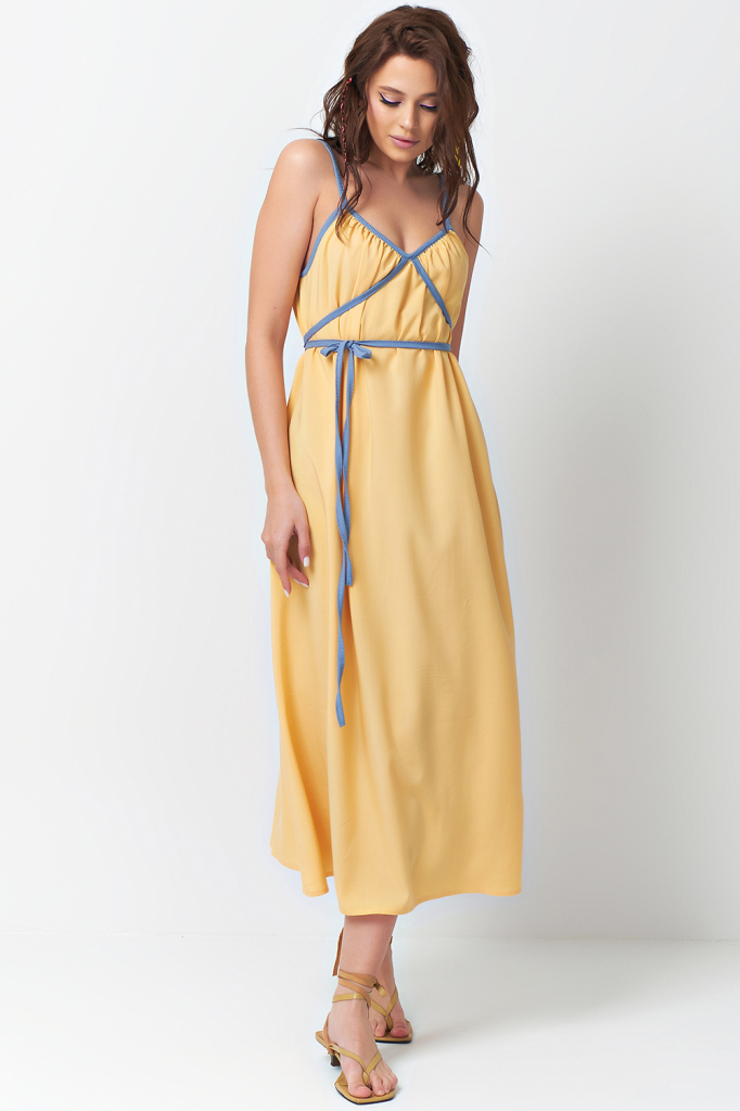 ст. цена2585руб.! Платье летнее на тонких бретельках с завязками желтое