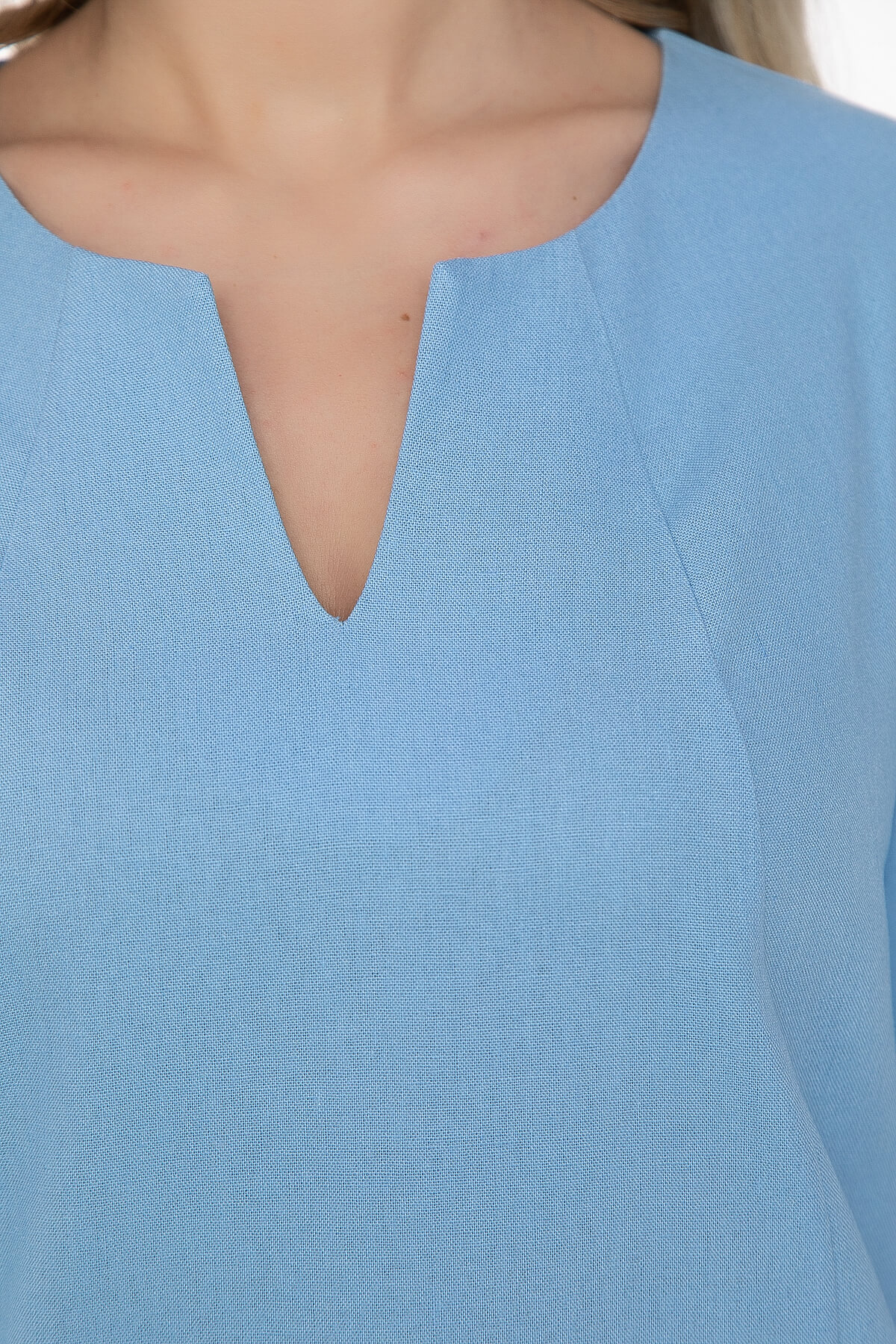 Женственное платье прямого кроя с вырезом спереди выглядит стильно и модно. Отличный выбор в летнею жаркую погоду, оно удобное и свободное, не сковывает движения.