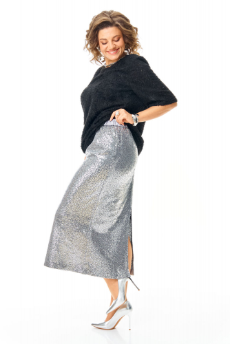 Платье полуприлегающего силуэта из трикотажного полотна. Горловина с цельнокроеной стойкой. Рукав со спущенной линией плеча комбинированный отделочной тканью.  По переду дизайнерская вышивка.