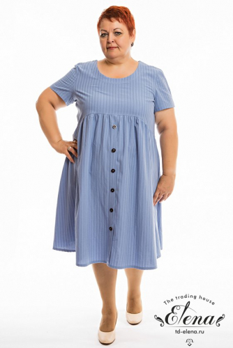 Платье выполнено из кулирного х/б полотна. Платье полуприлегающего силуэта. Шов на спинке подчеркивает талию. Вырез горловины украшают пуговицы. Рукав цельнокроеный, обработан притачной планкой. По бокам расположены карманы.