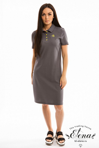 Платье выполнено из однотонного фактурного полотна "академик жаккард". Втачные рукава длиной 3/4 с манжетой по низу. На спинке средний шов с длинной потайной молнией. Вырез горловины круглый, с планкой. От планки рельефы до линии низа. В швах соединения манжет, планки и рельефов проложен декоративный кант.