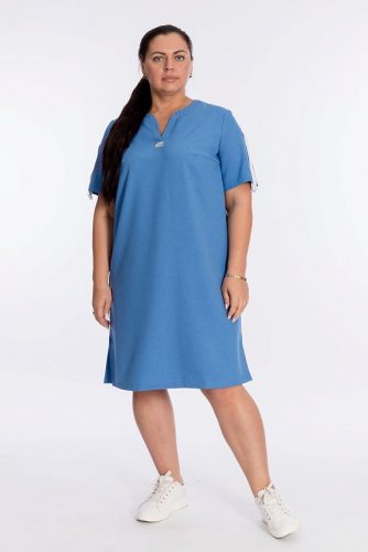 Платье выполнено из однотонного академика с люрексом. Рукав длинный, с манжетой. Платье с втачным поясом и юбкой восьмиклинкой. Сзади застёжка на длинную потайную молнию.