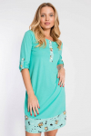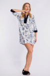 Платье прямого силуэта с разрезом внизу выполнено из хлопкового полотна. Короткие рукава и вырез горловины обработаны бейкой контрастного цвета.