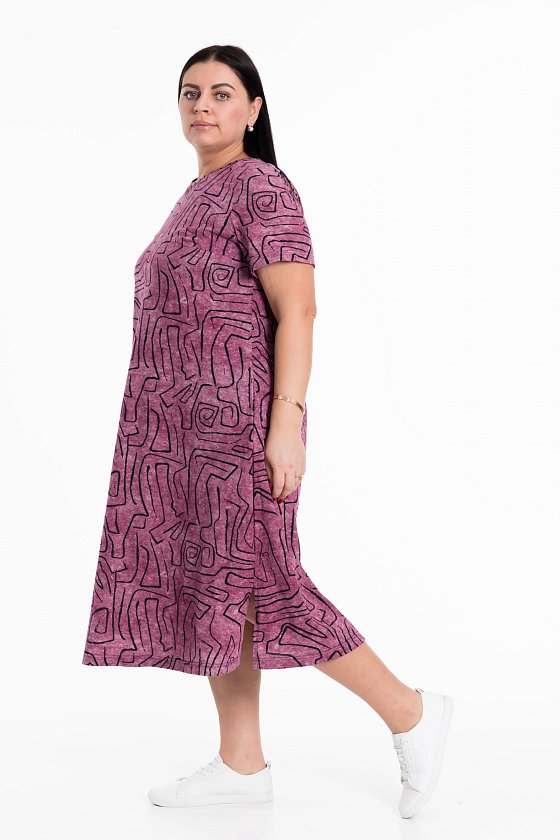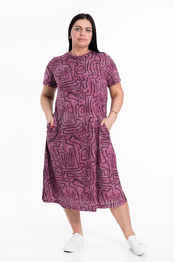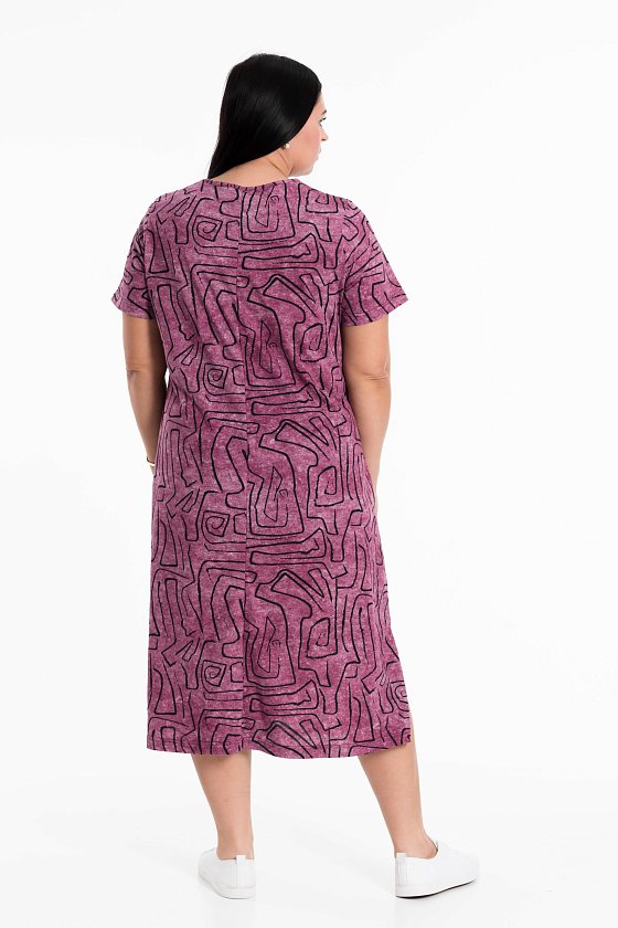 Платье из х/б полотна. По бокам разрезы, карманы в боковых швах, горловина обработана бейкой из основного полотна.