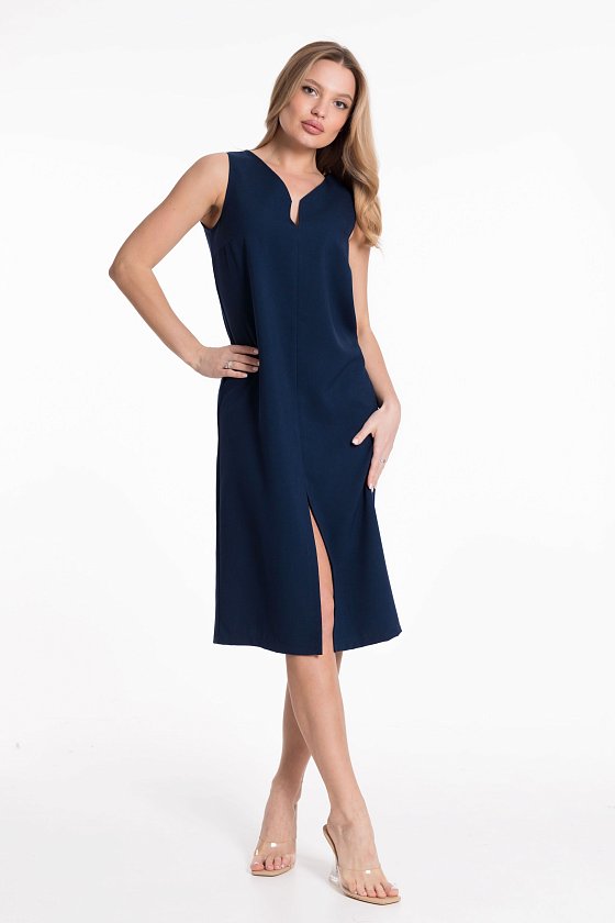 Платье из полотна "искусственный лен" прямого силуэта, в переднем шве разрез.