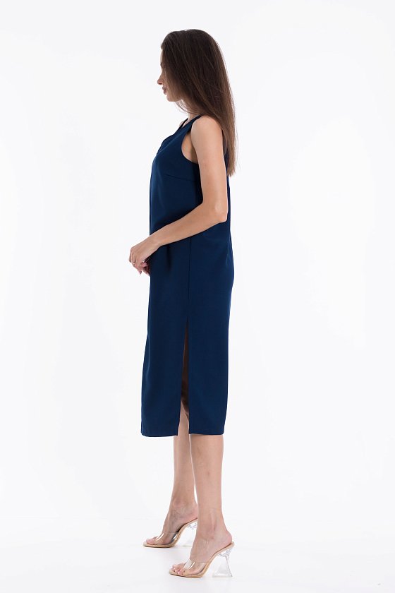 Платье из полотна "искусственный лен". Свободный силуэт, V-образный вырез горловины, средний шов по центру спинки и полочки делает платье особенно элегантным, в боковых швах разрезы.