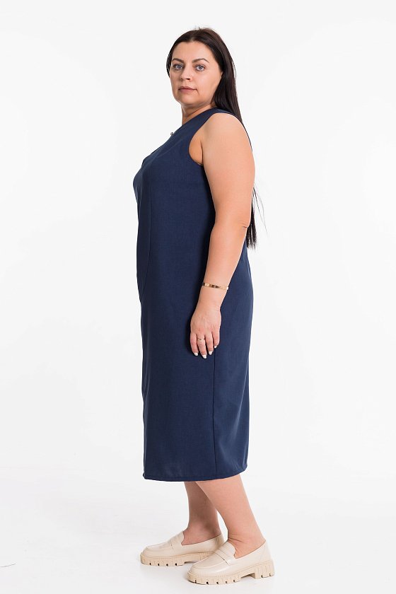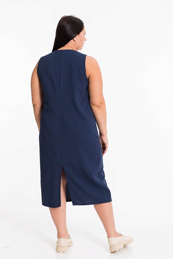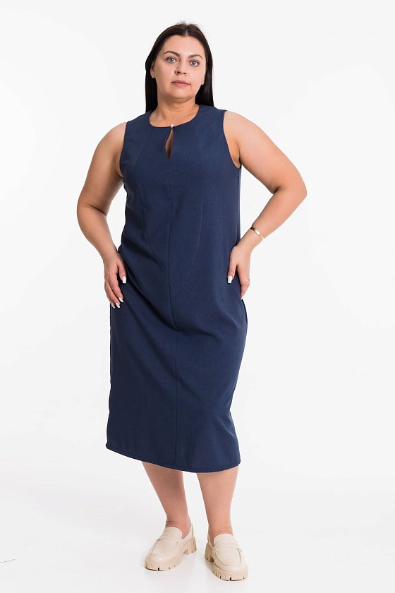 Элегантное платье миди из искусственного льна - отличный выбор для тёплого сезона. Лаконичный силуэт без рукавов подчёркивает фигуру, а фигурные рельефы визуально вытягивают силуэт. Аккуратный вырез-капля с декоративной пуговицей добавляет изюминку образу.